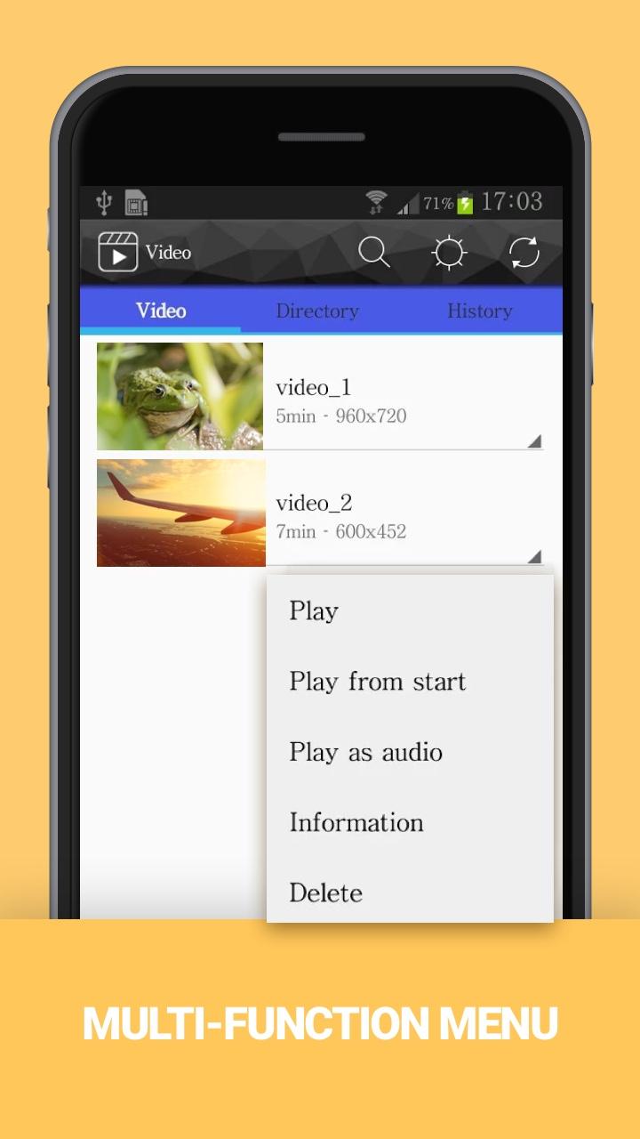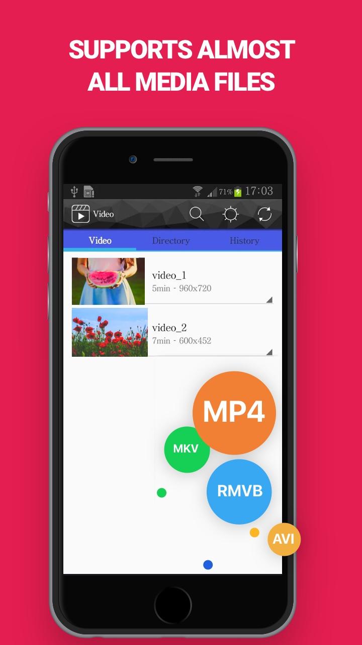 Video Player ist eine sehr leistungsfähige Media Player, wie zB: RMVB, MKV, AVI, MP4, WMV, FLV, MPEG, RM, ASF ... Der Media Player ist eine kostenlose und Open-Source-Cross-Plattform-Media-Player, die die meisten Mediendateien sowie Scheiben, Geräte und Netzwerk-Streaming-Protokolle spielt .Die Spieler hat eine Medien-Bibliothek für vor allem für Video-Dateien, und erlaubt es, Ordner direkt durchsuchen. es unterstützt Gesten, um Lautstärke und Helligkeit steuern und auch ein Widget für die Videoüberwachung, unterstützt Headsets Kontrolle. Eigenschaften: - Video-Formate: AVI, MP4, WMV, FLV, MPEG, RM, RMVB, ASF, MKV, MOV, OGX ... - Unterstützt Multi-Core-Dekodierung - Mutiple Untertitelspuren Unterstützung - Hardware-Beschleunigung kann mehr Videos mit Hilfe der neuen H / W-Decoder eingesetzt werden. - Löschen von Dateien von externen Speicher (sdcard) auf Android 4.4 KitKat. - Untertitel Type-Schriften manuell geladen.