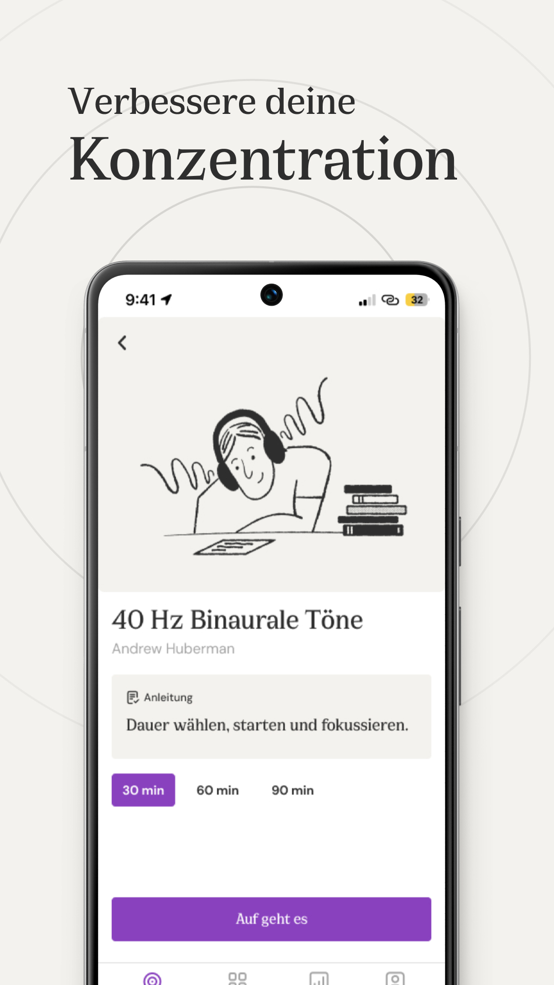 Verwende Protokolle wie 40 Hz, um die Konzentration während des Tages zu verbessern. Tägliche Flüssigkeitszufuhr sorgt dafür, dass du den ganzen Tag über hydriert bleibst. Und natürlich kann NSDR, unser beliebtestes Protokoll, die Neuroplastizität auslösen und dir helfen, deine Lernfähigkeit zu verbessern - bei allem, was du tust.