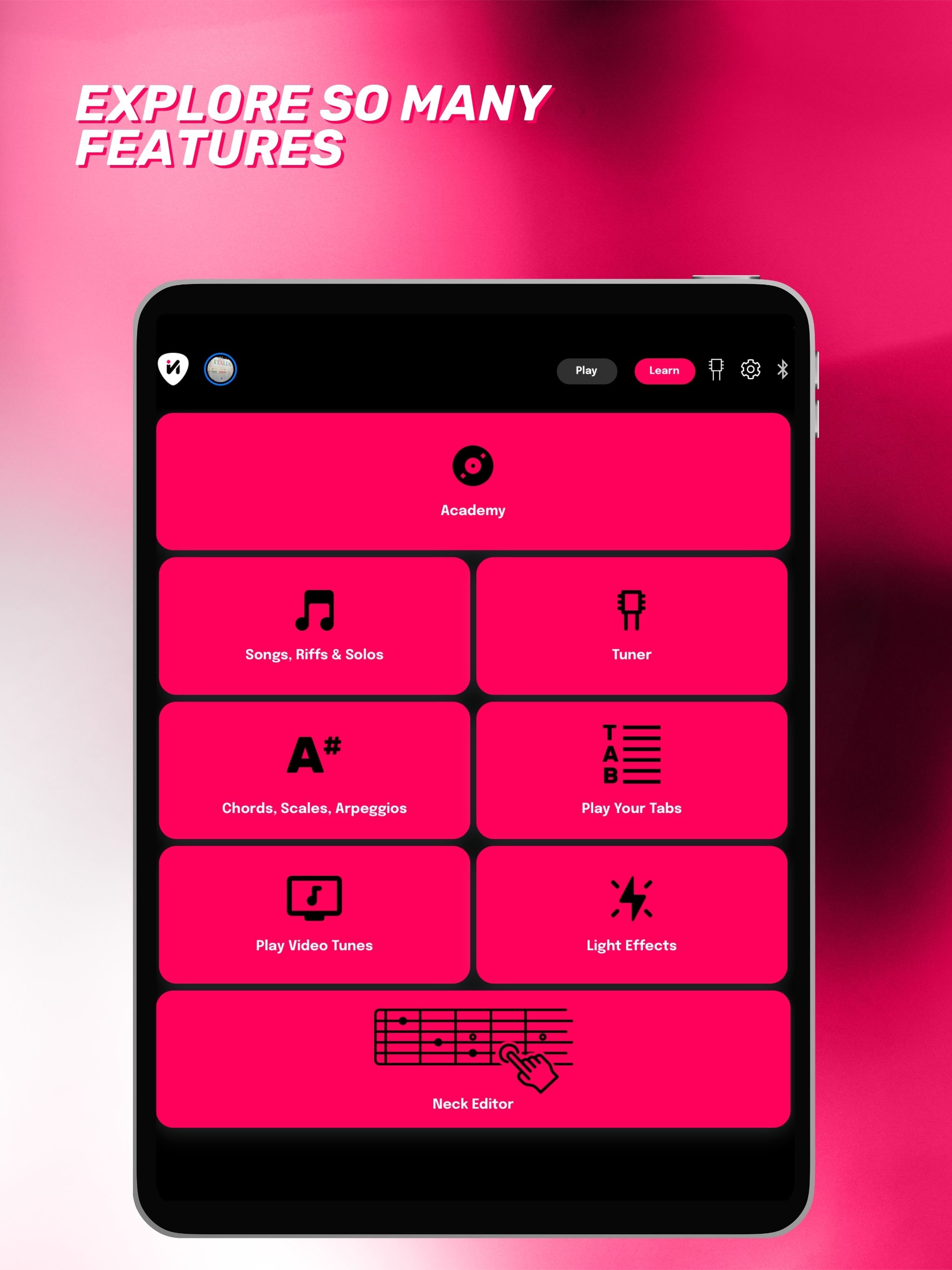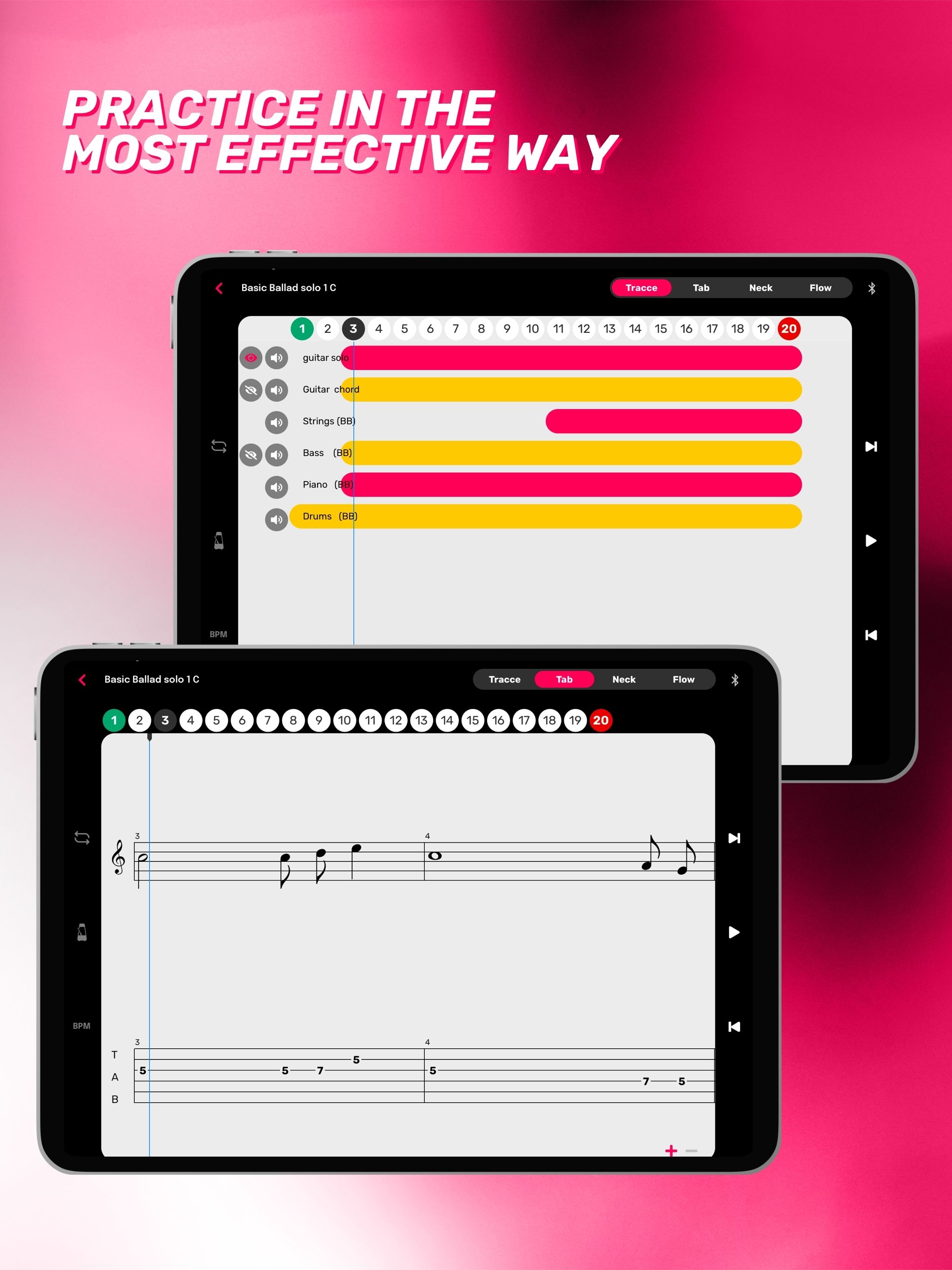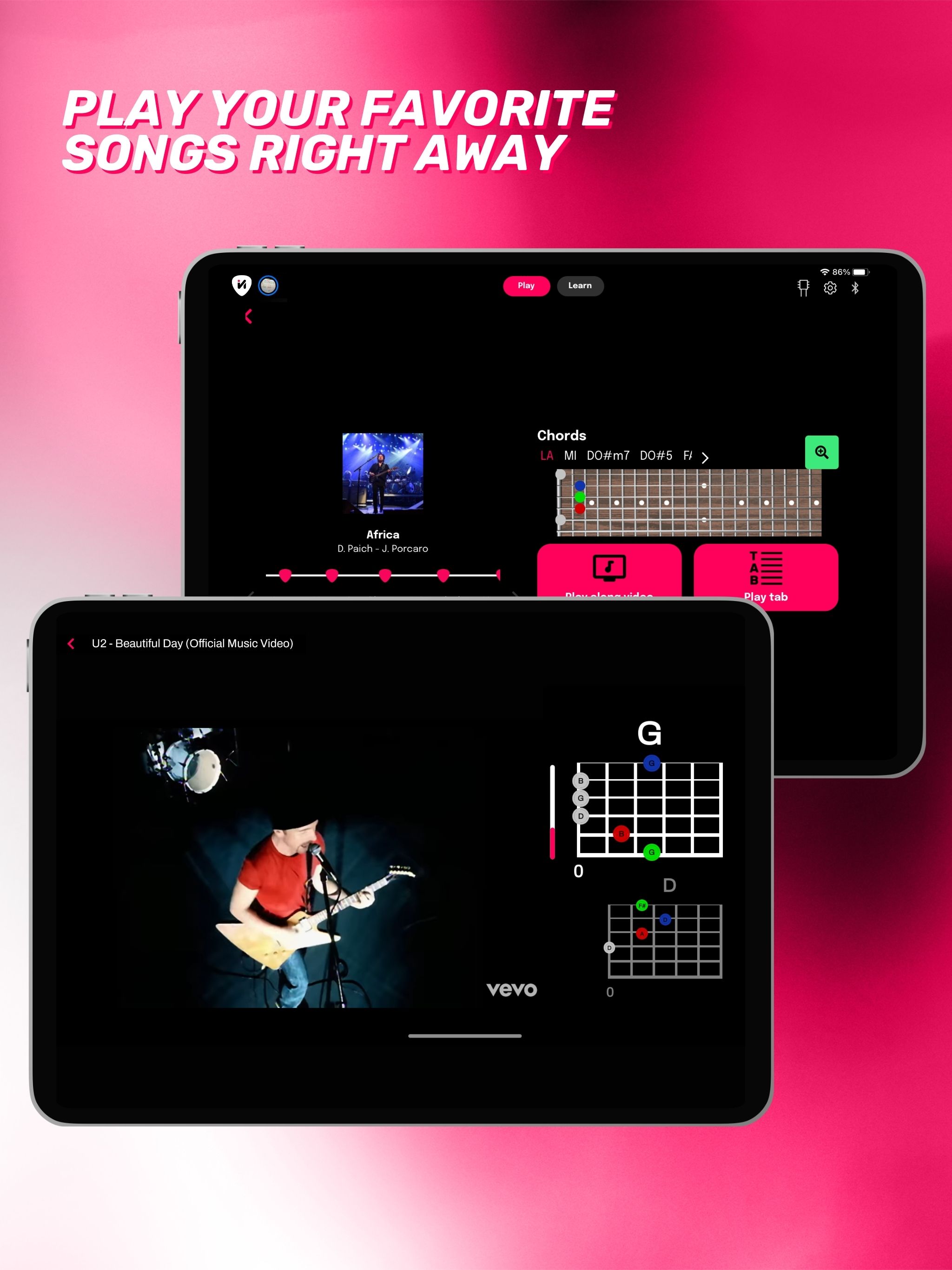 Mit Visual Note ist das Erlernen des Gitarrenspiels wirklich einfach und macht Spaß! Entdecken Sie ein komplettes Lernsystem, das an Ihren musikalischen Weg angepasst werden kann. Hunderte von Liedern zum Lernen Entdecken Sie eine riesige Bibliothek von Stücken zum Spielen und Lernen. Jede Menge Lektionen zum Lernen Lernpfade, die an Ihre Bedürfnisse angepasst sind. 6 Anzeigemodi Passen Sie Ihr Lernerlebnis mit der jeweils perfekten Oberfläche an. Handbuch für Akkorde und Tonleitern Lernen Sie Akkorde und Tonleitern, um Ihr Spiel zu verbessern. Unendlich viele Tracks zum Hochladen Laden Sie so viele .gp-Dateien hoch, wie Sie möchten, und genießen Sie sie mit der Leistung des Visual Note Players. Stimmen Sie Ihre Gitarre auf einfache und präzise Weise. LERNEN SIE WIE NIE ZUVOR Lernen Sie, wie, wann und wo Sie wollen, mit Schritt-für-Schritt-Kursen, die so gestaltet sind, dass Sie in Ihrem eigenen Tempo lernen können. Greifen Sie auf exklusive Inhalte zu, die von professionellen Musiklehrern und Gitarristen erstellt wurden. Erleben Sie einen innovativen und intuitiven Lernweg mit Kursen für verschiedene Fähigkeitsstufen. Nutzen Sie die Vorteile von Videolektionen und interaktiven Übungen für besonders effektives Lernen. Üben Sie die Musikgenres, die Sie lieben, und wiederholen Sie Akkorde, Tonleitern und Techniken innerhalb der App. Tauchen Sie mit den innovativen Player-Funktionen tief in das Erlernen von Songs, Riffs und Soli ein. Verlangsamen und wiederholen Sie die schwierigsten Stellen, um jede Passage mit Leichtigkeit zu lernen. SPIELEN SIE JETZT IHRE LIEBLINGSSONGS Wählen Sie aus einer großen Auswahl an Titeln und beginnen Sie sofort mit dem Spielen Ihrer Lieblingssongs. Wählen Sie Songs Ihrer Lieblingskünstler und lernen Sie sie im Modus Ihrer Wahl. Begleiten Sie sie, indem Sie sich die Akkorde ansehen, während Sie das Originalvideo anschauen, oder studieren Sie jede Passage, jedes Riff und jedes Solo eingehend. GENIESSEN SIE IHRE EIGENEN INHALTE Laden Sie .gp-Dateien hoch und nutzen Sie die Möglichkeiten des Visual Note Players, um jede Tabulatur zu lernen. VERBESSERN SIE IHRE LERNFÄHIGKEITEN Besitzen Sie ein Visual Note LED-Gerät? Verbinden Sie es über Bluetooth mit der App und lassen Sie die LEDs Ihre Finger intuitiv führen, um Akkorde, Tonleitern, Melodien, Songs und mehr zu lernen! Lernen Sie blitzschnell und erreichen Sie Ziele, die Ihre Vorstellungskraft übersteigen! MACHEN SIE IHRE AUFTRITTE EINZIGARTIG Verwenden Sie die dynamischen Lichteffekte von Visual Note, um Ihren Live-Auftritten eine besondere Note zu verleihen. Erstellen Sie Ihre eigenen Effekte oder verwenden Sie solche, die im Takt der Musik laufen, um Ihr Publikum zu fesseln. Mit Visual Note macht das Gitarre spielen lernen besonders viel Spaß! Laden Sie die App kostenlos herunter und probieren Sie alle Funktionen aus. Aktivieren Sie Ihr Premium-Abonnement, um alle ständig aktualisierten Inhalte freizuschalten.