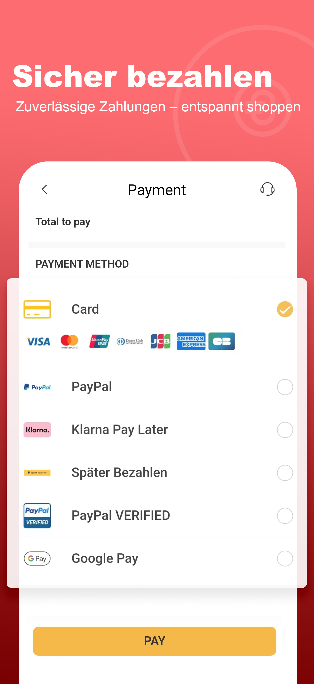 - Jetzt kaufen, später bezahlen! Wählen Sie Afterpay oder Klarna, um in 4 zinsfreien Raten zu bezahlen.