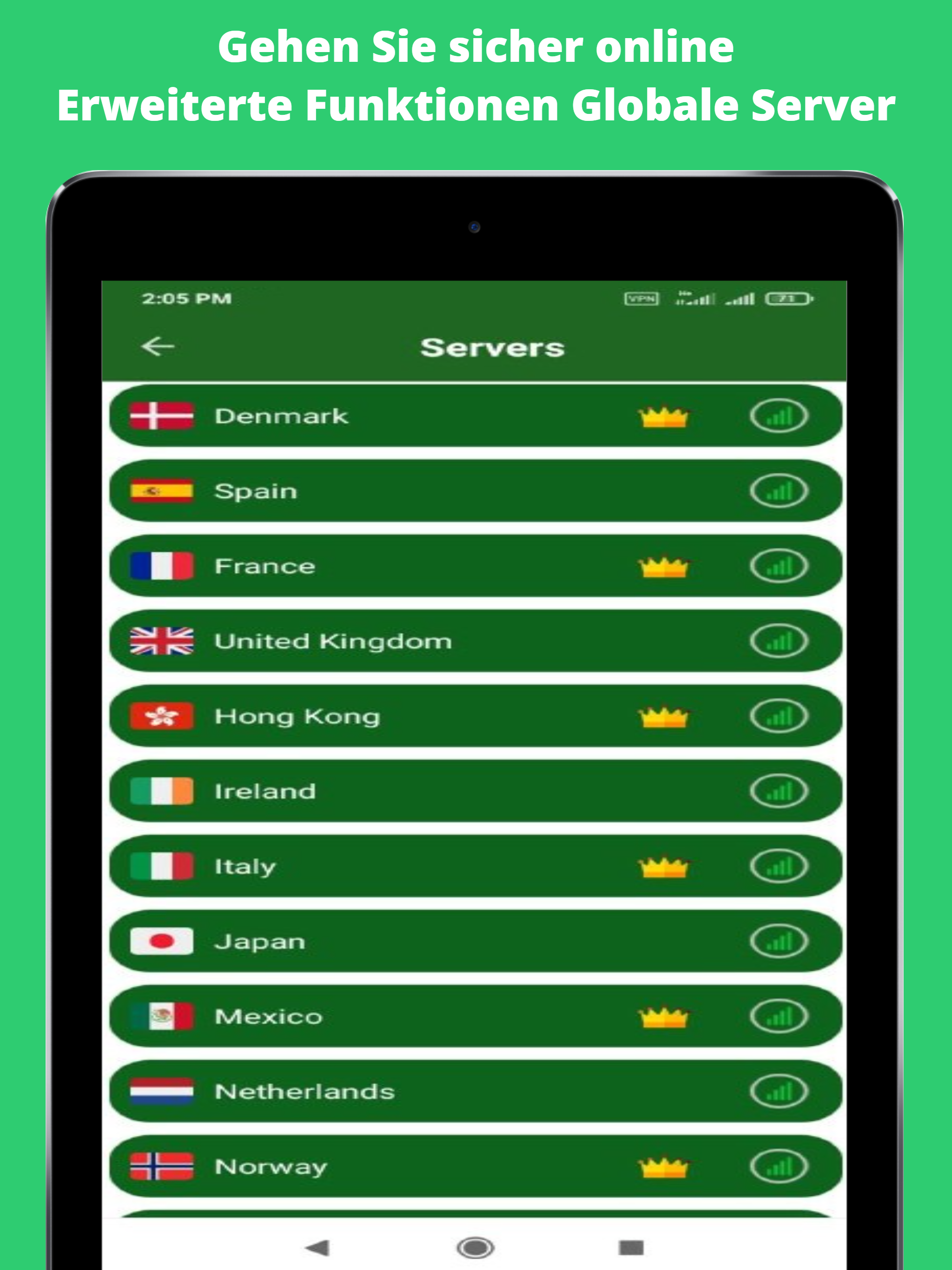 VPN Secure - Unlimited Proxy sichert Ihre Internetverbindung und verbirgt Ihre IP-Adresse, um Ihre persönlichen Daten vor Werbetreibenden, Netzwerkeingriffen und Hackern zu schützen. Der beste Online-Schutz ist der, an den Sie sich nicht erinnern müssen. Schützen Sie Ihre privaten Daten mühelos mit VPN Secure - Unlimited Proxy Der zuverlässigste Weg, Ihre Privatsphäre im Internet zu schützen und Ihre Online-Daten sicher zu halten, ist ein VPN. VPN Secure - Unlimited Proxy fungiert als Tunnel, der es Ihnen ermöglicht, sicher im Internet zu surfen und Videos zu streamen, während Zuschauer von Dritten von der Verbindung ferngehalten werden. Sobald Sie mit VPN Secure - Unlimited Proxy verbunden sind, ist Ihre Online-Aktivität geschützt und verhindert, dass Cyberkriminelle, Suchmaschinen und Websites Ihren Standort verfolgen und Ihre Informationen analysieren. Um Ihr Gerät zu sichern, starten Sie VPN Secure - Unlimited Proxy und wählen Sie den Quellstandort Ihrer neuen IP-Adresse aus, um eine sichere Online-Umgebung einzurichten. Sie können dem Online-Identitätsdiebstahl Einhalt gebieten, sich mit öffentlichem WLAN verbinden, ohne dass die Möglichkeit besteht, dass Sie gehackt werden, und verhindern, dass Ihr ISP Ihre Geschwindigkeit drosselt, neben vielen anderen Vorteilen in Bezug auf Schnüffeln und Cyberkriminalität. Wir haben ein globales VPN-Netzwerk aufgebaut, das Amerika, Europa und Asien umfasst, und expandieren bald in weitere Länder. Die meisten Server können verwendet werden, Sie können auf die Flagge klicken und den Server beliebig oft wechseln. Hauptfunktion: * Große Anzahl von Servern, Hochgeschwindigkeitsbandbreite * Wählen Sie Apps aus, die VPN verwenden (Android 5.0+ erforderlich) * Funktioniert mit WLAN, 5G, LTE/4G, 3G und allen mobilen Datenträgern * Intelligenter Server auswählen * Gut gestaltete Benutzeroberfläche, ein paar ADs * Keine Nutzung und Zeitbegrenzung * Keine Registrierung oder Konfiguration erforderlich * Keine zusätzlichen Berechtigungen erforderlich * Winzige Größe, sicherer VPN Secure - Unlimited Proxy, das schnellste sichere virtuelle private Netzwerk der Welt, und genießen Sie alles!