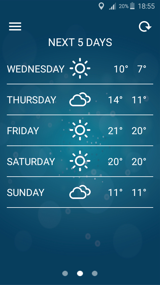 Lassen Sie sich von keinen schlechten meteorologischen Prognosen überraschen! Ob es bewölkt, regnet, schneit oder sogar stürmisch draußen ist, Wetter Deutschland wird Sie mit zeitnahen Wetterbedingungen und Prognosen in Ihrer Stadt, und sogar anderen Ort in der ganzen Welt, auf dem Laufenden halten. Schauen Sie die Prognose für Ihren Lieblingsplatz auf der Welt nach! Sie können Wetter Berlin, Wetter Hamburg Wetter Köln, Wetter Frankfurt und Wetter München nachschauen. Wir präsentieren elegante und einfache 5-Tage-Vorhersage mit präzisem Wetterbericht. Mit dieser perfekten und einfach zu bedienenden Prognose App wären Sie in der Lage die Tagestemperatur alle 3 Stunden zu prüfen, und Sie werden immer wissen, was Sie tragen können oder ob Sie einen Regenschirm mit nehmen sollten.