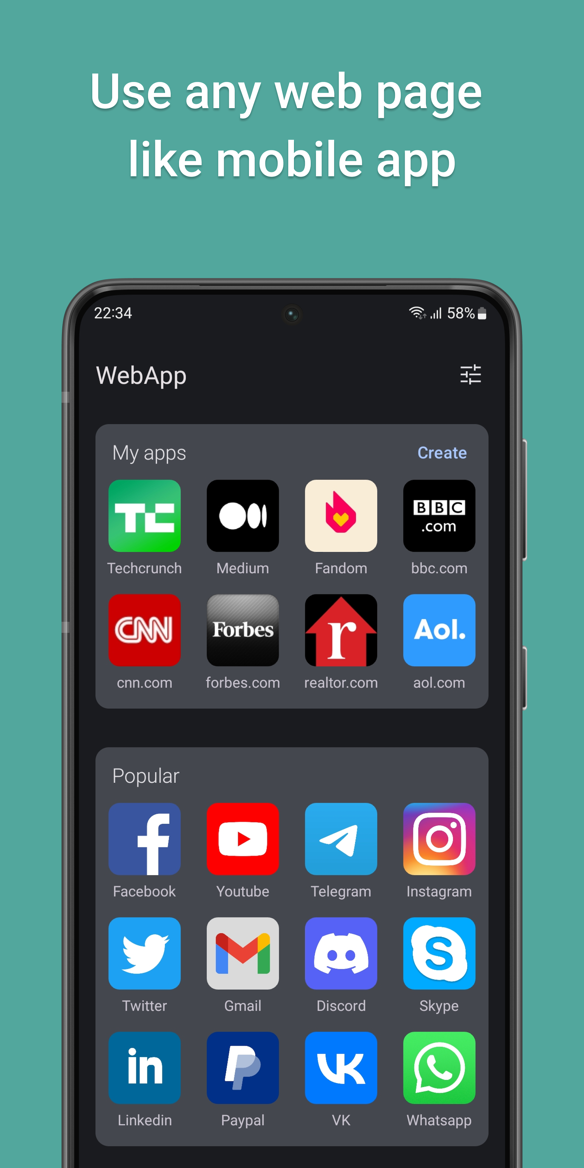 Stellen Sie sich WebApp vor - den ultimativen Website-zu-App-Ersteller und Webbrowser für Android! Mit unserer revolutionären Webbrowser-App können Sie jede Website mit nur wenigen Fingertipps in eine voll funktionsfähige Web-App umwandeln. Verabschieden Sie sich von umständlichen mobilen Browsern und begrüßen Sie blitzschnelle Web-Apps, die für die Bildschirmgröße Ihres Geräts optimiert sind. Unsere Webbrowser-App basiert auf der neuesten Progressive Web App (PWA) -Technologie, mit der Sie app-ähnliche Erlebnisse aus jeder Website erstellen können. Egal, ob Sie soziale Medien durchsuchen, online einkaufen oder einfach nur Nachrichten lesen, der Webbrowser von WebApp bietet Ihnen ein schnelleres, reibungsloseres und benutzerfreundlicheres Erlebnis. So funktioniert es: ✅ Öffnen Sie WebApp und tippen Sie auf "App erstellen" ✅ Geben Sie die URL der Website ein, die Sie in eine Web-App umwandeln möchten ✅ Wir erstellen automatisch eine Web-App für Sie, inklusive eines Symbols, das Sie zu Ihrem Startbildschirm hinzufügen können ✅ Tippen Sie auf das Symbol, um Ihre neue Web-App zu starten und mit dem Surfen zu beginnen! ✅ Mit unserem Website-zu-App-Ersteller und Webbrowser können Sie so viele Web-Apps erstellen, wie Sie möchten - es ist komplett kostenlos und unbegrenzt! Sie können sogar Apps klonen, indem Sie mehrere Kopien derselben Website erstellen, und unsere App benennt sie automatisch um (z. B. "Facebook" und "Facebook 2"). Hier sind einige der Funktionen, die WebApp zum besten Website-zu-App-Ersteller und Webbrowser im Play Store machen: 🌐 Blitzschnelle Web-Apps, die für die Bildschirmgröße Ihres Geräts optimiert sind 🌐 Unbegrenzte Website-zu-App-Erstellung - erstellen Sie so viele Web-Apps, wie Sie möchten, kostenlos! 🌐 App-Klone - erstellen Sie mühelos mehrere Kopien derselben Website 🌐 Progressive Web App-Technologie - verwandeln Sie jede Website in ein app-ähnliches Erlebnis 🌐 Sofortige App-Erstellung - keine Wartezeiten, kein Aufwand 🌐 Schneller Browser - genießen Sie schnelles und nahtloses Surfen auf Ihren Lieblingswebsites 🌐 Mobiler Browser - erleben Sie Websites im mobiloptimierten Format 🌐 Sicher Surfen - surfen Sie mit verbesserter Sicherheit und Schutz im Internet 🌐 Privater Browser - halten Sie Ihre Online-Aktivitäten privat und sicher 🌐 Werbeblocker - sagen Sie aufdringlichen Werbeanzeigen beim Surfen Lebewohl 🌐 Benutzerfreundliche Oberfläche - einfach zu bedienen und zu navigieren für ein reibungsloses Surferlebnis 🌐 Tab-Verwaltung - öffnen, wechseln und organisieren Sie mehrere Tabs mühelos 🌐 Inkognito-Modus - durchsuchen Sie privat, ohne Spuren zu hinterlassen 🌐 Anpassbare Einstellungen - passen Sie Ihre Browsing-Präferenzen an Ihre Bedürfnisse an 🌐 Offline-Lesen - greifen Sie auch ohne Internetverbindung auf Ihre gespeicherten Web-Apps und Inhalte zu 🌐 Leichte Webbrowser-App - unsere App ist klein und nimmt nicht viel Speicherplatz auf Ihrem Gerät ein 🌐 Dient als Lesezeichen-Manager - all Ihre Web-Apps sind an einem praktischen Ort gespeichert Laden Sie WebApp noch heute herunter und erleben Sie den ultimativen Website-zu-App-Ersteller und Webbrowser im Play Store! Verwandeln Sie jede Website mit nur wenigen Fingertipps in eine voll funktionsfähige Web-App. Probieren Sie unsere Webbrowser-App jetzt aus und surfen Sie wie nie zuvor!