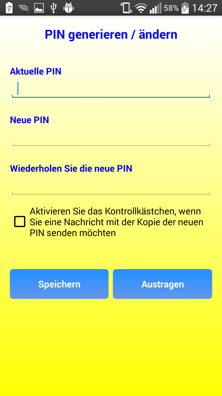 Der gesamte Vorgang ist durch einen PIN-Zugriff geschützt, der geändert