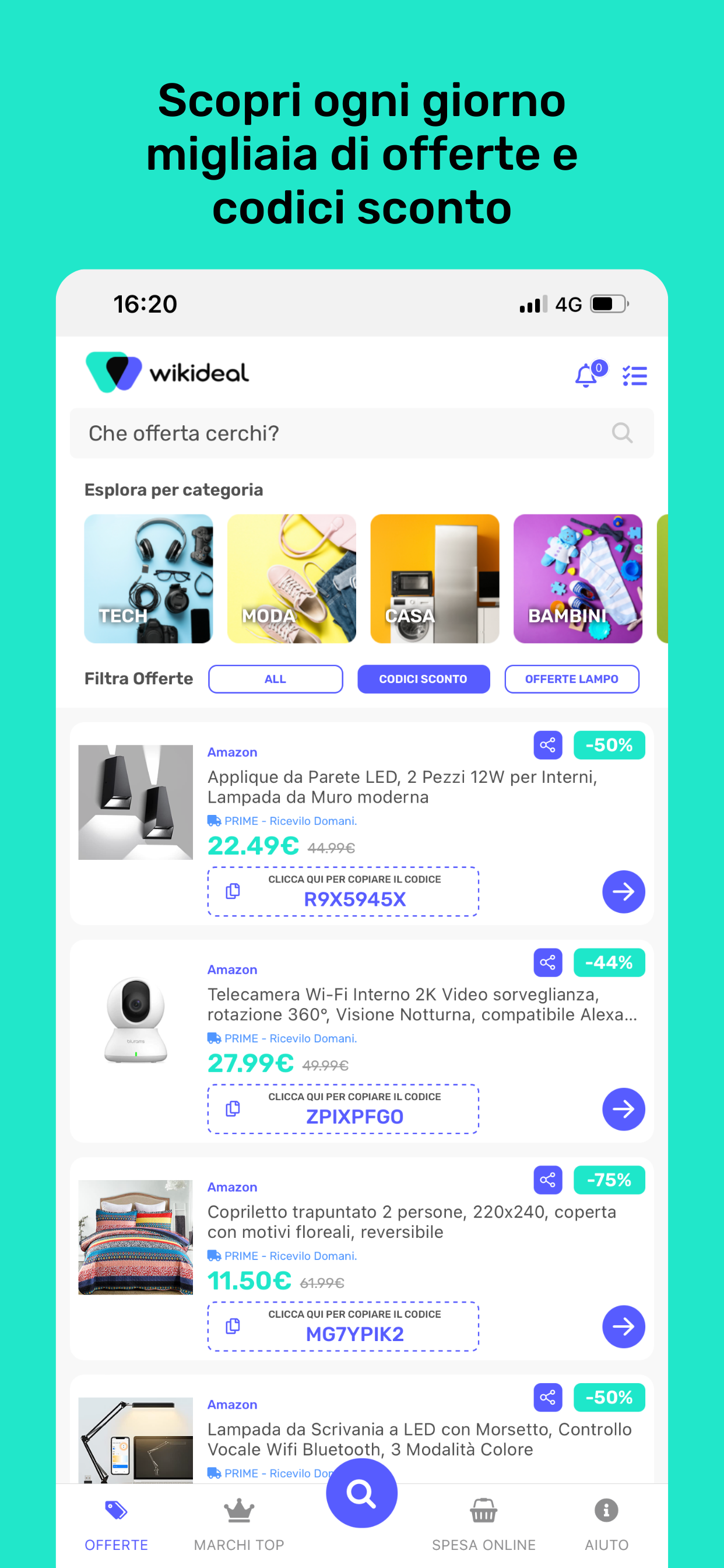 Mit über 1 Million monatlichen Rabatten ist WikiDeal eine der größten Angebotsseiten in Italien, auf der Sie kostenlos die besten Rabattcodes, Coupons, Flash-Angebote und vieles mehr finden. Die WikiDeal App ist Ihr neuer Einkaufsassistent, dank dem Sie nie wieder den vollen Preis bezahlen!