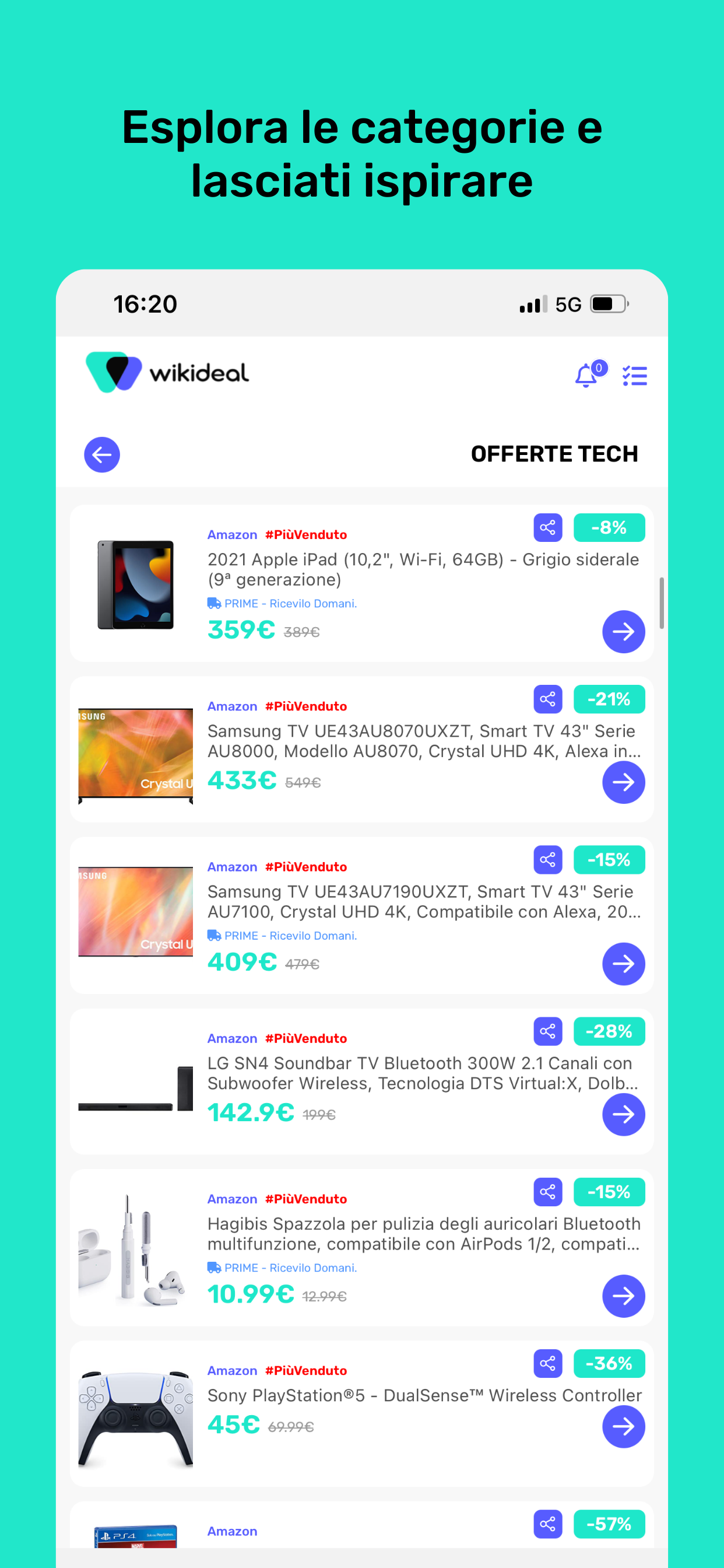 • Aggiunta la nuova sezione “Sottocosto” con offerte Amazon scontate almeno del 50%