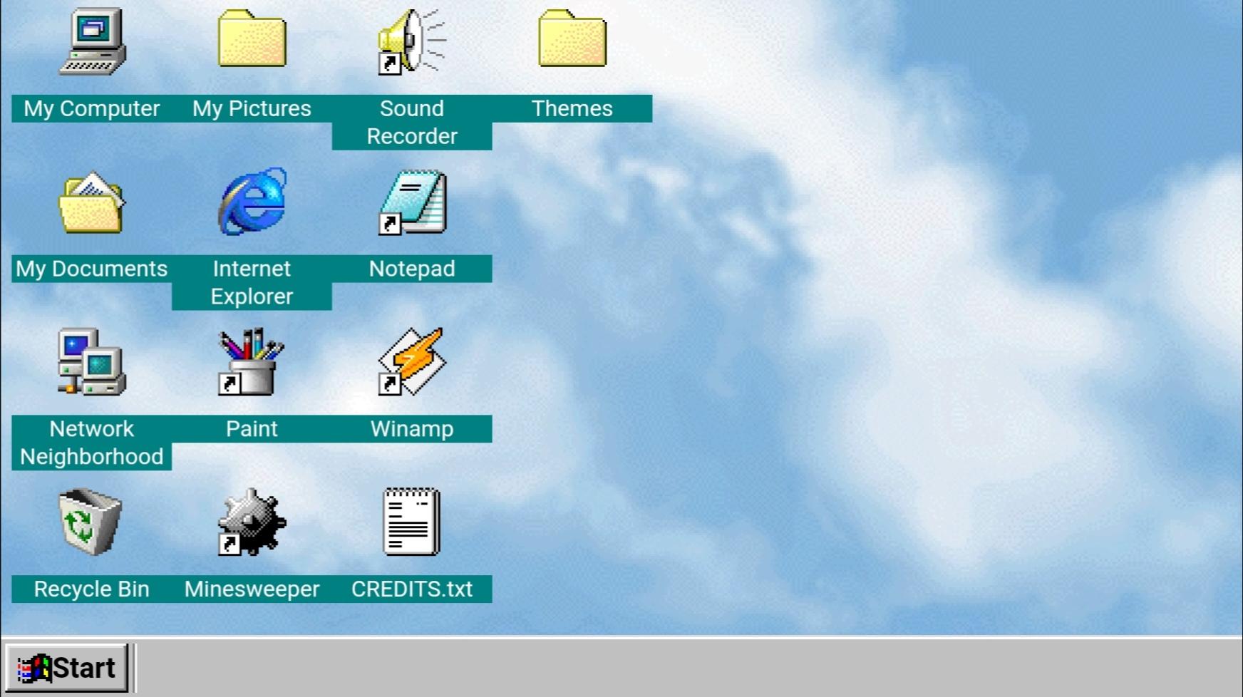• Fühlen Sie die Erfahrung von Windows 98 PC! • Verwenden Sie den Internet Explorer, um im Internet zu surfen • Zeichnen Sie in Farbe • Spielen Sie Minesweeper Solitaire oder FreeCell • Spielen Sie Musik und Videos mit Windows Media Player ab • Schreiben Sie Texte in Notepad und WordPad • Anpassbare Hintergrundbilder (klicken Sie mit der rechten Maustaste auf den Desktop, klicken Sie auf Eigenschaften) • USB-Mausunterstützung • Ursprüngliches Startmenü