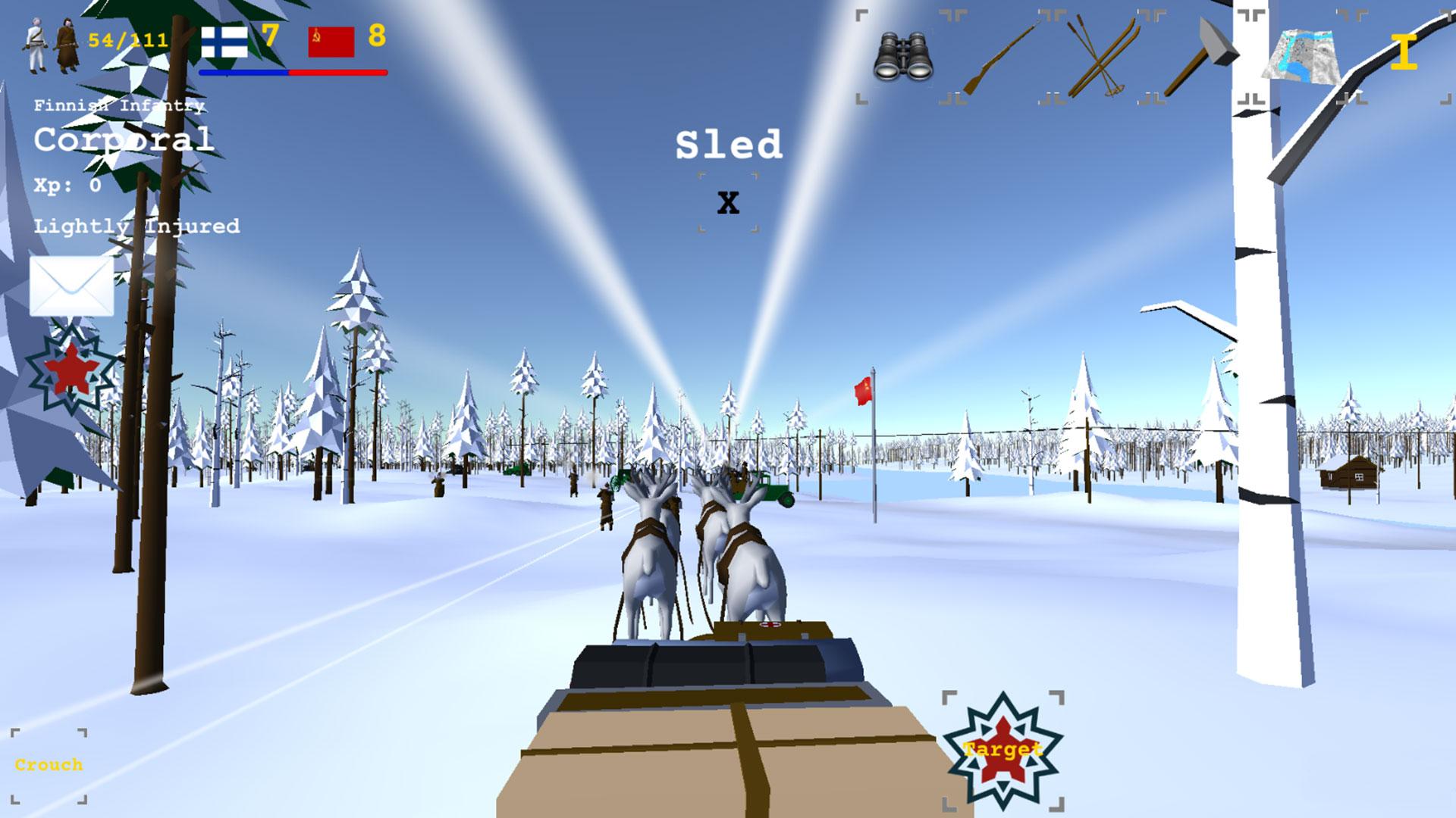 Nutze die Taktik und Beweglichkeit der finnischen Skitruppen und nutze das Gelände, um den überlegenen Kräften und Waffen der Sowjets zu widerstehen.