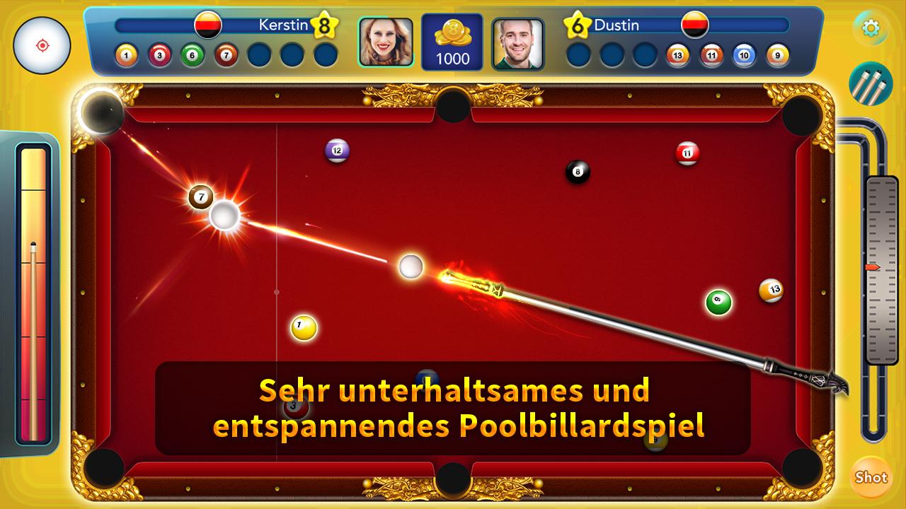 Mit endlosen Schwierigkeitsgraden und höchst genauen Hits ist Wonder Pool der beste Pool-Spiel und Billard für das Spielen von 8 Ball und Snooker. Es ist der beliebteste und glänzende Start unter den Sportspielen! Nur fordere deine Freunde im Pool jederzeit und überall auf. Nehmen Sie den Champion im Turnier und PK anderen Meister des Pools! Hauptmerkmale: 【Gratis Täglicher Bonus Schatz】 Melden Sie sich mit Ihrem Facebook-Konto an, um die Daily Lucky Draw teilzunehmen. Frei, um endlosen Bonus und verschiedene empfindliche Cues zu bekommen! 【Atemberaubende Grafik & Simulierte Brechen】 Mit Pool am Telefon, können Sie die realistischsten und spannendsten Breaking Erfahrung überall genießen. 【Aufregendes Erlebnis & Echtzeit-Turnier】 Mit Auswahl von Hintergrund mit verschiedenen Stil und Lage, kann der Spieler genießen und bekommen Nervenkitzel von der atemberaubendsten visuellen Effekt. Wähle deinen Gegner und bringe Bälle JETZT! 【Überrascht Bonus & Spiel Stütze kostenlos Millionen von zarten Cues, Tischen, Requisiten für Sie entworfen, bekommen es und erstellen Sie Ihre persönliche Wonder POOL CLUB! 【Wöchentliche Weltrangliste】 Verschiedene Rangliste mit verschiedenen Tag aktualisiert wöchentlich. Nehmen Sie einfach die Herausforderung und ergreifen Sie den Spitzenplatz für Ihr Land! Verschiedene Modi & Regeln -8 Ball: Das beliebteste Pool-Spiel. Mit dem Cue Ball zu brechen bunte Kugeln und gestreifte Kugeln zuerst zu brechen. Nach deinem Objekt Bälle sind alle eingesteckt, nur sinken die schwarze 8 Ball und bekommen große gewinnen! -Snooker: Wenn Sie nach Herausforderung suchen, wählen Sie kleinere Bälle und größere Tabelle. Breakball nach Tipps. Schießen Sie verschiedene farbige Kugeln, um verschiedene Punkte zu bekommen, und wer hat am besten verdient den großen Gewinn. 【English Description】 With endless level difficulty and supremely accurate hits, Wonder Pool is the best pool game and billiard for playing 8 Ball and Snooker. It is the most popular and shinning start among sport games! Just challenge your friends in Wonder Pool anytime and anywhere. Take the champion in tournament and PK other master of Snooker! 9 Ball is coming soon, if you are a big fan of 9 ball, please wait for us. Play 8 ball and snooker, select the latest delicate cue, and take endless challenge! With Wonder Pool, you can practice billiard skill, curveballs are able in Wonder Pool, give you the most real snooker ball experience! Take the challenging billiard pool, and earn mega bonus! You can also join the LIVE tournament with Pool players all around the world anywhere. Key Features: 【Thrilling Experience & Real Time Tournament】 With selection of background with different style and location, player can enjoy it and get thrill from the most stunning visual effect. Select your opponent, and break 8 balls NOW! 【Surprised Bonus & Game Prop for FREE】 Millions of delicate cues, tables, props designed for you, get it and create your personal Wonder POOL CLUB! 【Border your Social Network & Enjoy Pool Games with Friends】 Login with Facebook to easily build your social network and join favorite club in Wonder Pool! Different Modes & Rules -8 Ball: The most popular pool game. Using the cue ball to break solid-colored balls and striped balls first. After your object balls are all pocketed, just sink the black 8 ball and get big win! -Snooker: If you are looking for challenge, select smaller balls and bigger table. Break ball according to tips. Shoot different colored balls to get different points, and who got highest earns the big win. If you are a BIG FAN of Wonder Pool Games! Just join Wonder POOL club and hit 8 ball with friend all over the world!
