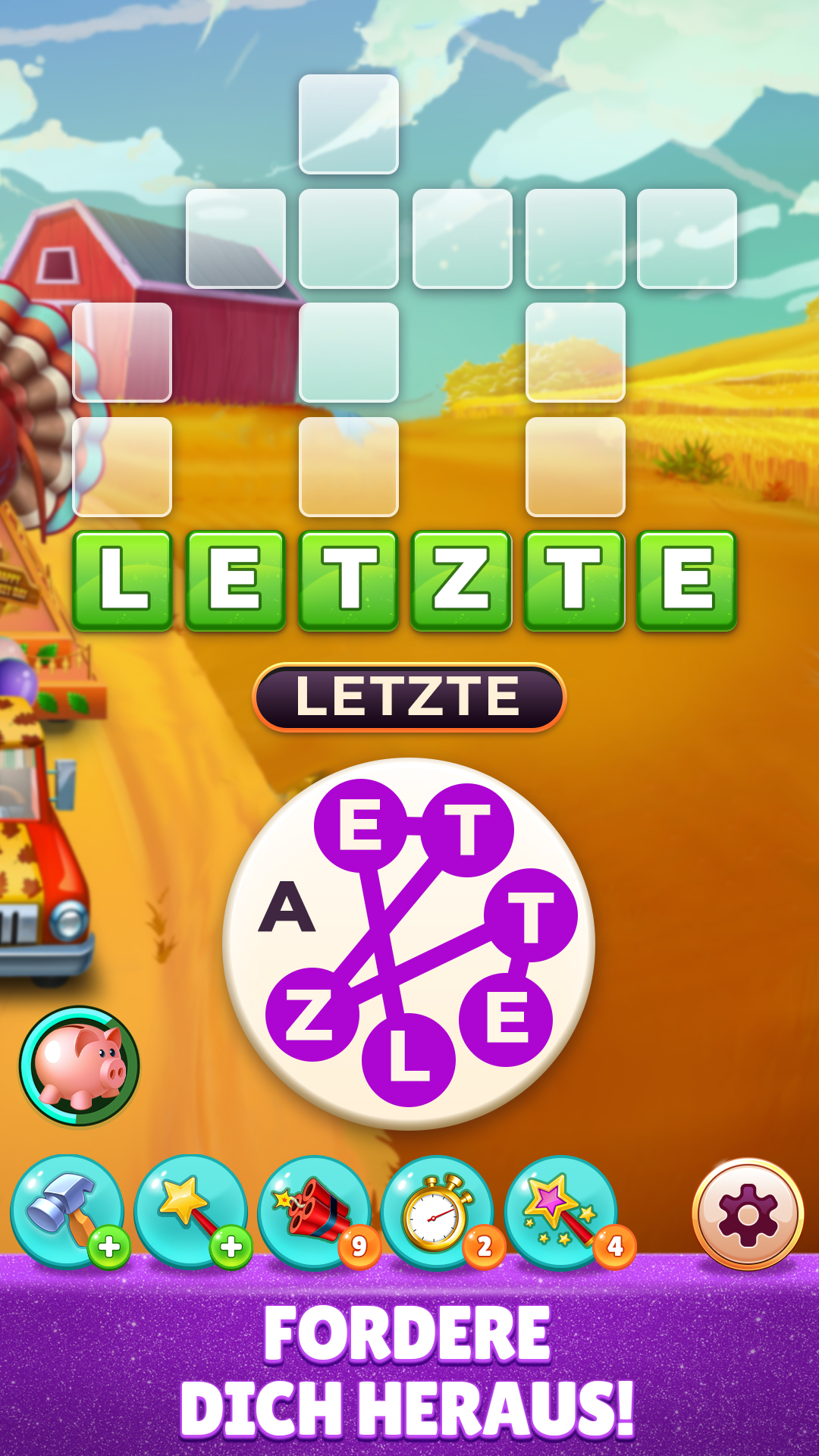 Belohnungen - Nachdem Sie jedes Worträtsel gelöst haben, werden Sie mit Münzen und Sterne belohnt, die Ihnen helfen, Missionen abzuschließen und die Farm wieder aufzubauen.