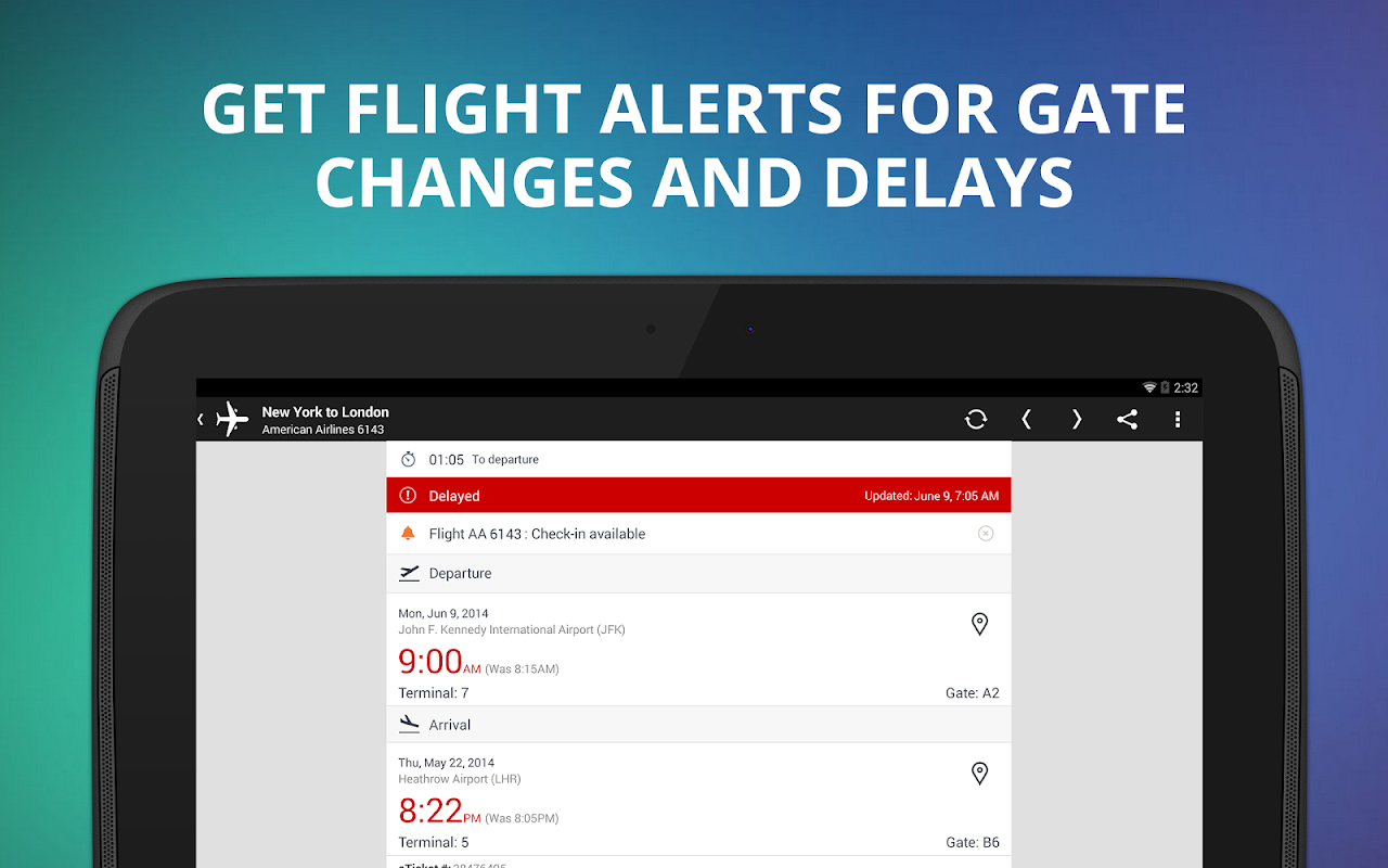 • Flugerinnerungen - WorldMate sendet Ihnen wenige Stunden vor Abflug Flugerinnerungen, somit wissen Sie im Voraus, ob sich das Gate oder die Abflugzeit geändert hat.