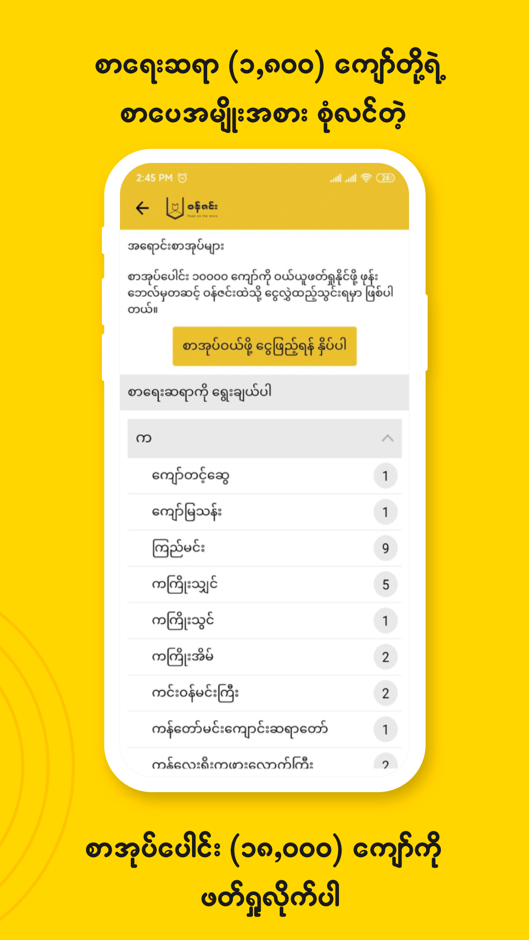 လွယ်ကူသက်သာရိုးရှင်းစွာ ဝန်ဇင်းမှာ စာဖတ်ပါ။ ဝန် ဇင်း စာအုပ်စင် ဆိုတာ လက်ထဲမှာ တစ်လုံး တစ်လုံး ရှိ နဲ့ နဲ့ (၂, ၀၀၀) ကျော်တို့ ရဲ့ စာပေ အမျိုးအစား လင် တဲ့ စာအုပ်ပေါင်း (၂၀, ၀၀၀) ကျော်ကို သက်သာ စွာ စွာ ဝယ်ယူ၊ App ပဲဖြစ်ပါတယ်။ ဒါ့အပြင် အခမဲ့ စာအုပ်ပေါင်း (၃, ၀၀၀) ကျော်ကို လဲ ဝန် ဇင်း မှာ အလွယ်တကူ ဖတ်ရှု နိုင်မှာ ဖြစ်ပါတယ်။။။ နာမည်ကြီး စာရေးဆရာတွေရဲ့ ဂန္တဝင်လက်ရာတွေ၊ ဘာသာပြန်စာပေတွေ၊ မြန်မာကာတွန်း ရုပ်ပြ စာအုပ် တွေကိုလည်း ဖတ်ရှု နိုင်တဲ့ အပြင်၊၊ သုတရသ ကဏ္ဍစုံ မြန်မာ အသံထွက် စာအုပ်ပေါင်း (၇၀၀) ကျော် ကိုလည်း အလွယ်တကူ နားဆင် ပါ။။။ " ရင် ထိတ် စရာ သဘာဝလွန် အဖြစ်အပျက်တွေကို လည်း ရှာဖွေ ဖတ်ရှု နိုင်မှာ ဖြစ်ပါတယ်။။ " ငွေပေး ချေမှု မှာလဲ မြန်မာနိုင်ငံရှိ ဖုန်း ဘေလ် ဖြင့် ငွေပေး ချေမှု အပြင် KPAY, WALLPAY, AYAPAY ကဲ့သို့သော မိုဘိုင်းဖုန်း ငွေပေး ချေ မှုများ ဖြင့် လဲ ပေး နိုင်ပါတယ် နိုင်ပါတယ်။ စာအုပ် ဖတ် ရာမှာ pdf ပုံစံ အပြင် စာအုပ် ကိုင် ဖတ် ရတဲ့ ခံစားချက်မျိုး ကို စေ မ ယ့ ် E-PUB-Leser စနစ် ဝန်ဆောင်မှု ပေးထားပါတယ် ပေးထားပါတယ်။။ ဒါ့အပြင် အိမ်မှာ နေရင်း စာအုပ် (physisches Buch) မှာ ယူ နိုင်တဲ့ နည်းစနစ် ကိုလည်း ကိုလည်း wun zinn nach home စာအုပ် အိမ် အ ရောက် ပို့ ဝန်ဆောင်မှု နဲ့ ချိတ်ဆက်ပြီး ချိတ်ဆက်ပြီး ထဲမှာ ထည့် သွင်း ထား ပါသေးတယ်။။ ဒါကြောင့် ဘယ်အချိန်၊ ဘယ်နေရာမှာ ဖြစ်ဖြစ် ကိုယ် ဖတ် စာအုပ်မျိုးစုံ ကို တစ်နေရာတည်းမှာ ရ ရှိနိုင် တာ က ဝန် ဇင်း တစ်ခုတည်း ပဲ ရှိတာပါ။။ EREADER အသုံးပြုသူ တွေအနေနဲ့ လည်း လည်း ကို ဖုန်းထဲမှာ ဖုန်းထဲမှာ synchronisieren လုပ်လိုက် ရုံ မိမိ ဖတ် လက် စ စာအုပ်ကို စာအုပ်ကို EREADER မှာ ပါ ဆက်လက် ဖတ်ရှု ပါ ပါ။။။။ စာအုပ်ကို မိုဘိုင်းဖုန်း ၊ Tablet ၊ EREADER ရှိတဲ့ သူ တိုင်း စာဖတ် အတွက် ဝန် ဝန် ဇင်း အမြဲတမ်း ဝန်ဆောင်မှုပေး လျက် ရှိပါတယ်။။။ Genießen Sie das beste Leseerlebnis mit Wun Zinn. Wun Zinn ist der größte eBook-Shop in Myanmar, in dem Sie in über 20.000 Bücher von über 2.000 berühmten Schriftstellern eintauchen können. Viele E-Books, Hörbücher und Comics stehen Ihnen zur Auswahl zur Verfügung. Über 3.000+ Bücher stehen auch zum KOSTENLOSEN Lesen zur Verfügung! Die Kategorien umfassen Klassiker, Übersetzungen, Fantasy-Bücher und Wuxia- und Xian-Xia-Romane, Thriller-Romane, Horror- und Mystery-Geschichten, Romantik, Jungenliebe, Mädchenliebesromane und mehr! Nicht nur mit Ihrem Smartphone, sondern auch sehr bequem mit Ihren Tablets und E-Readern zu lesen. Laden Sie es jetzt kostenlos herunter und finden Sie noch heute Ihr Lieblingsbuch! *** Hauptmerkmale *** Laden Sie Bücher herunter und lesen Sie sie jederzeit und überall offline. Über 3.000+ kostenlose E-Books Neue Bücher mit unterschiedlichen Kategorien werden täglich aktualisiert. Kann mit nur 37,5 Ks pro Tag für ein zweiwöchiges Paket abonnieren. Lesen Sie jeden Freitag KOSTENLOSE Bücher aus Myanmar. Nachtmodus und Schriftarteinstellungen nach Ihren Wünschen. Vorspeise, kostenloses Buch, viele Kategorien, merkt sich automatisch die Position der letzten Leseseite, unterstützt das Lesen bei Tag und Nacht, ordnet den Autorennamen mit dem myanmarischen Alphabet an und fühlt sich an, als würde man ein myanmarisches Buch in der Hand lesen. Synchronisieren Sie einfach Ihr Konto, um einfach dort weiterzumachen, wo Sie aufgehört haben, unabhängig davon, ob Sie sich auf Ihrem eReader befinden. Unterstützt Smartphone, Tablet, E-Reader Offline-Lesen In der App können Sie Ihre Lieblingsbücher ganz einfach nach Hause bestellen.