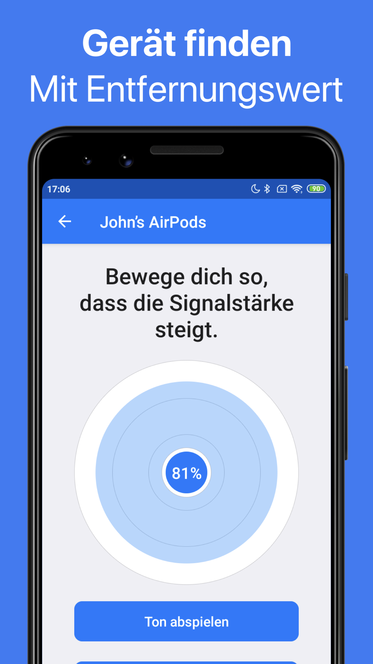 Wähle ein bestimmtes Gerät aus und sieh dir den berechneten Entfernungs-Score an. Beobachte, wie sich dieser Score ändert, während du dich bewegst, um deine verlorenen Geräte zu finden.