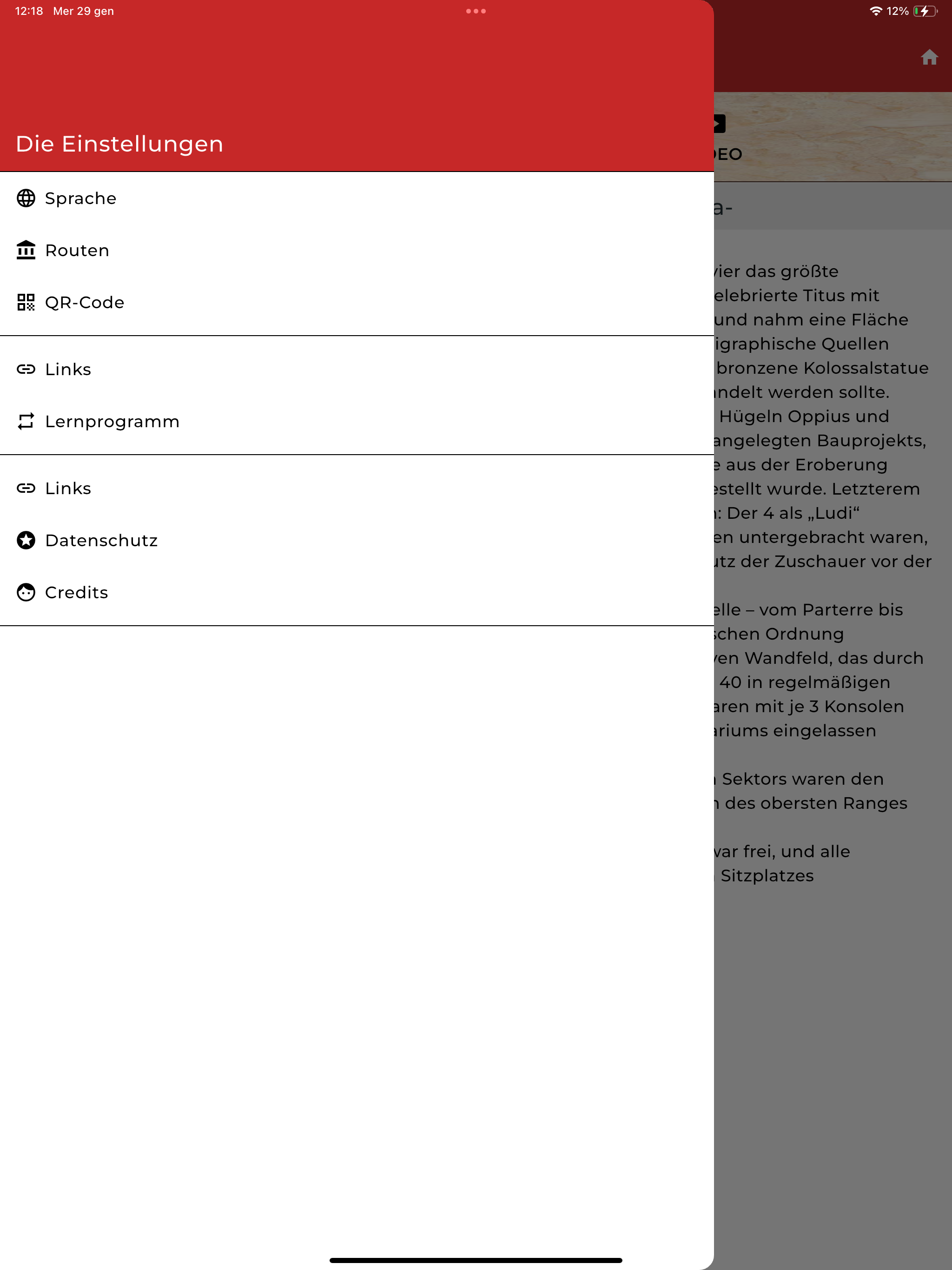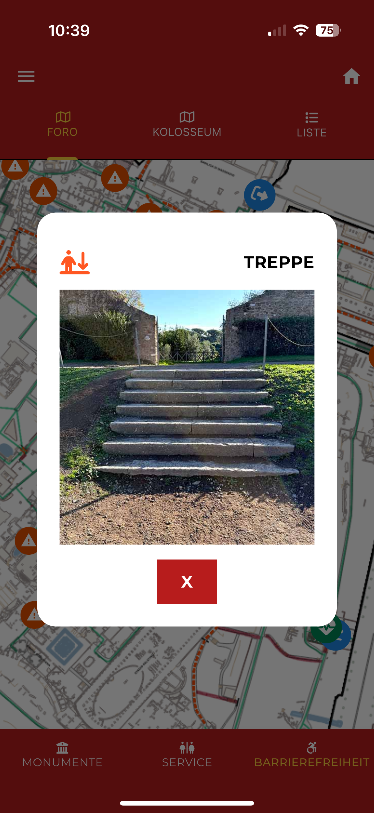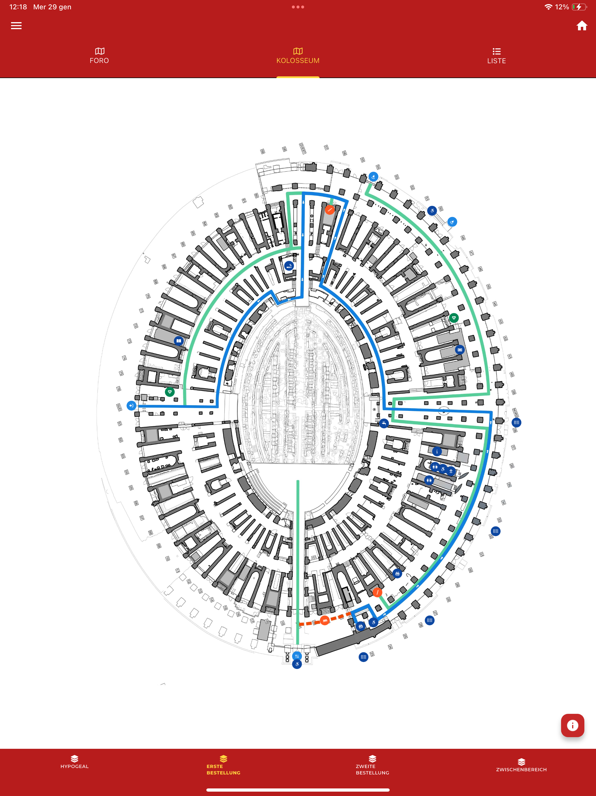 Y&Co ist die APP des Parco archeologico del Colosseo, die im Zeichen des DESIGN FOR ALL für alle konzipiert wurde. Y&Co ist die APP des Parco archeologico del Colosseo, die im Zeichen des DESIGN FOR ALL für alle konzipiert wurde. Y&Co ist das Akronym von You and Colosseo, aber auch von You und Community, was so viel heißt wie die Gesamtheit der Personen, die dieselbe Leidenschaft und das Interesse für den Parco archeologico del Colosseo verbindet. Y&Co ist die App, die es allen kostenlos ermöglicht, die Besichtigung der Monumente des PArCo zuerst vorzubereiten und dann zu vertiefen. Die App enthält 4 verschiedene Rundgänge: • Allgemeiner Rundgang in 9 Sprachen (Italienisch, Englisch, Französisch, Russisch, Chinesisch, Deutsch, Spanisch, Portugiesisch) und multimediale Inhalte • Rundgang für Kinder, mit der vestalischen Jungfrau Tarpeia als Maskottchen (Italienisch und Englisch) und multimediale Inhalte • Rundgang für sehbeeinträchtigte und blinde Besucher (Italienisch und Englisch), mit Audiobeschreibungen • Rundgang für hörgeschädigte und taube Besucher (LIS und ASL) mit offiziellen Dolmetschern Die App Y&Co vertieft den Rundgang der taktilen Tafeln, die sich im gesamten PArCo befinden, zwischen Kolosseum (2. Ebene), Forum Romanum und Palatin. Die taktilen Tafeln illustrieren mit Lageplänen und 3D-Reproduktionen einige der Monumente des PArCo und der Funde des Museo Palatino. Die App Y&Co ermöglicht Folgendes: • Sie können Ihren bevorzugten Rundgang AUSWÄHLEN • Sie können die Monumente oder Funde AUSWÄHLEN, die Sie entlang des Rundgangs interessieren • Sie können SEHEN, LESEN, HÖREN UND SICH AMÜSIEREN und dabei die gewählten Inhalte vertiefen Die App Y&Co wird von einer Karte begleitet: Wenn Sie die Benachrichtigungsfunktion auf der Menüseite aktivieren, werden Sie informiert, sobald Sie sich einem der Monumente oder Funde des PArCo nähern. EIGENSCHAFTEN UND FUNKTIONEN • 9 Sprachen • Gebärdensprache LIS und ASL • Karte des PArCo • Besichtigungsrundgänge und entsprechende Inhalte, auch multimediale • QR-Code zum Herunterladen der einzelnen Inhalte