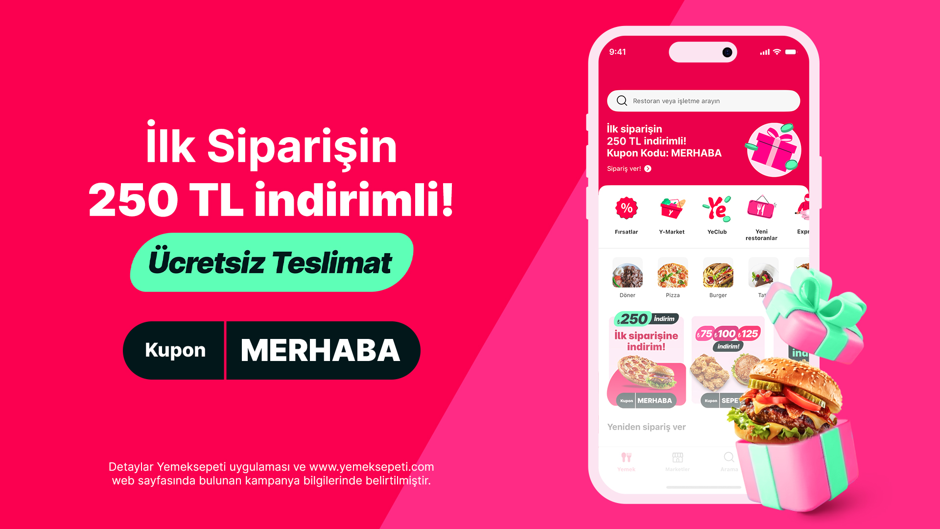 Seit 2001 ist Yemeksepeti die erste Marke, die einem in den Sinn kommt, wenn es um Online-Essensbestellungen geht – mit über 50.000 Restaurantpartnern in allen 81 Städten der Türkei und der Türkischen Republik Nordzypern! Und wir liefern nicht nur Essen: Mit Yemeksepeti Market und Yemeksepeti Mahalle bringen wir dir auch Lebensmittel und alles, was du täglich brauchst, direkt nach Hause!