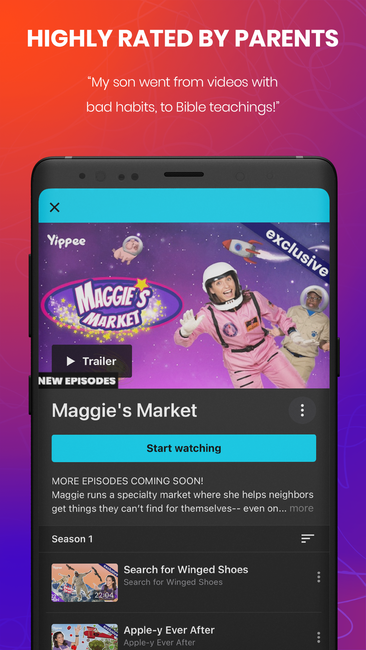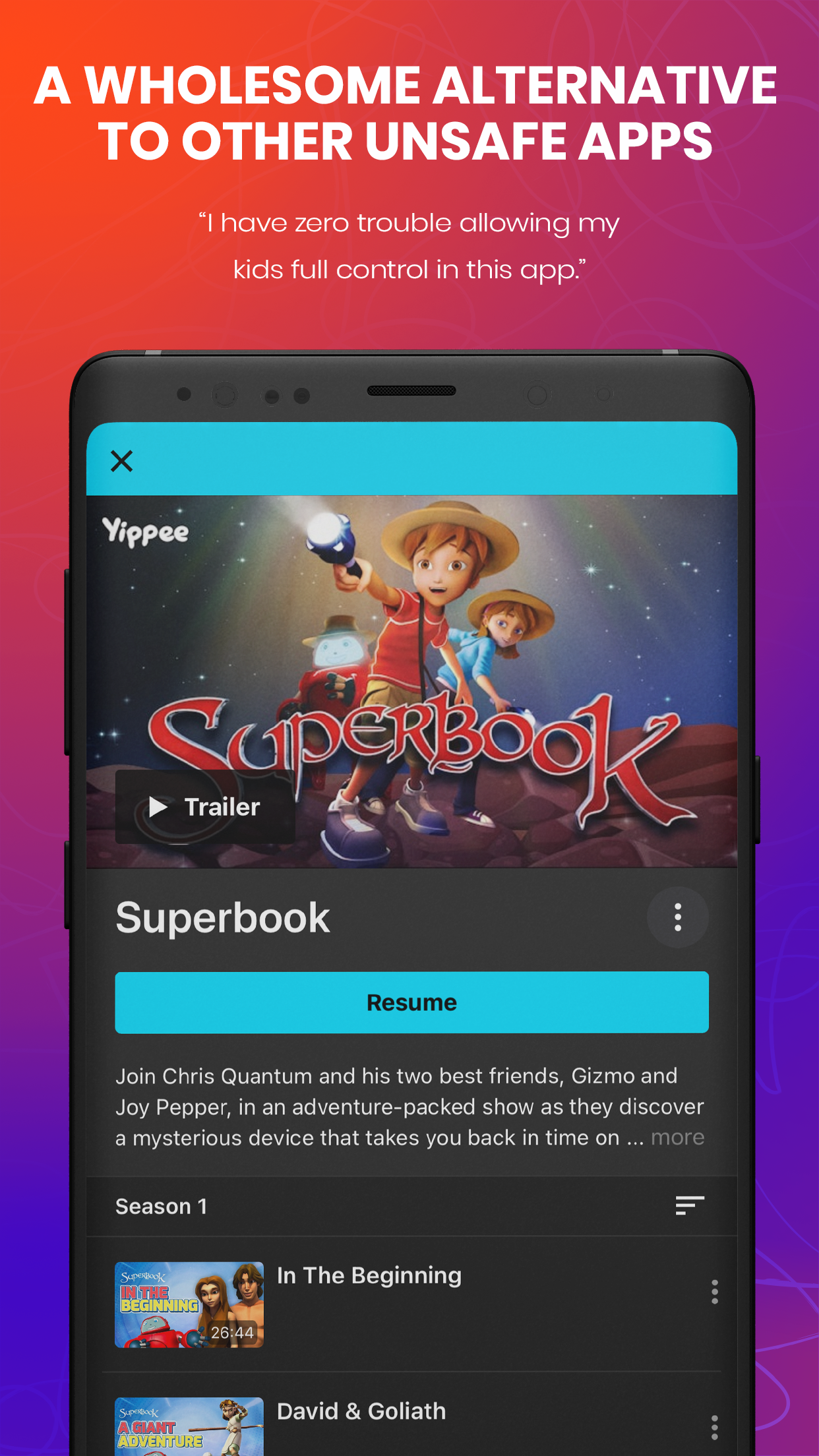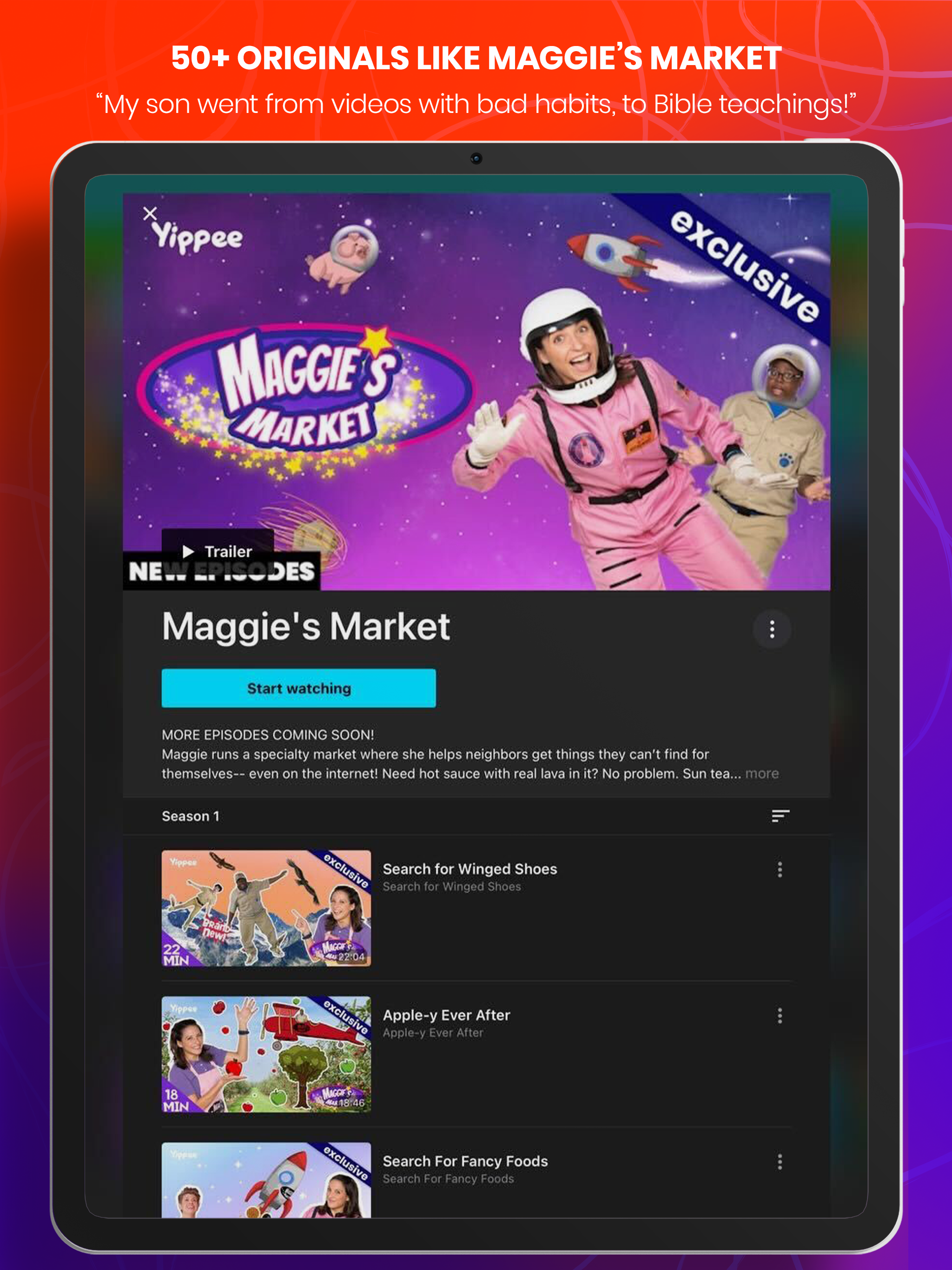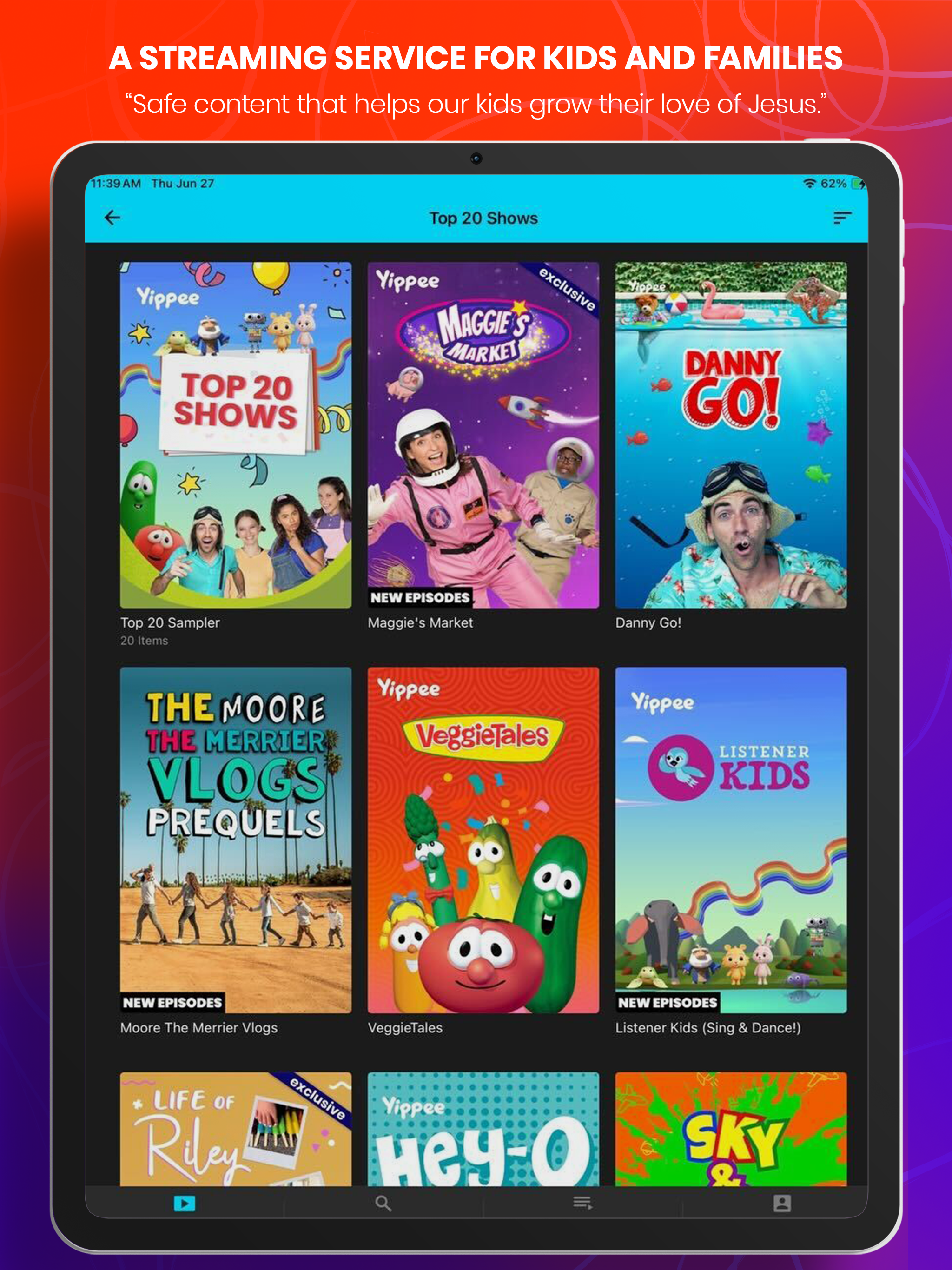 Yippee ist eine christliche Streaming-App, speziell für Kinder und Familien, die sichere und glaubensnahe Unterhaltung suchen. Ohne Werbung, ohne Algorithmen und ohne störende Inhalte bietet Yippee ein vertrautes Erlebnis mit Geschichten aus der Bibel, den Worten von Jesus und christlichen Werten. Hier findest du Serien und Geschichten, die täglich begleiten – wie eine Bibel für jeden Tag.