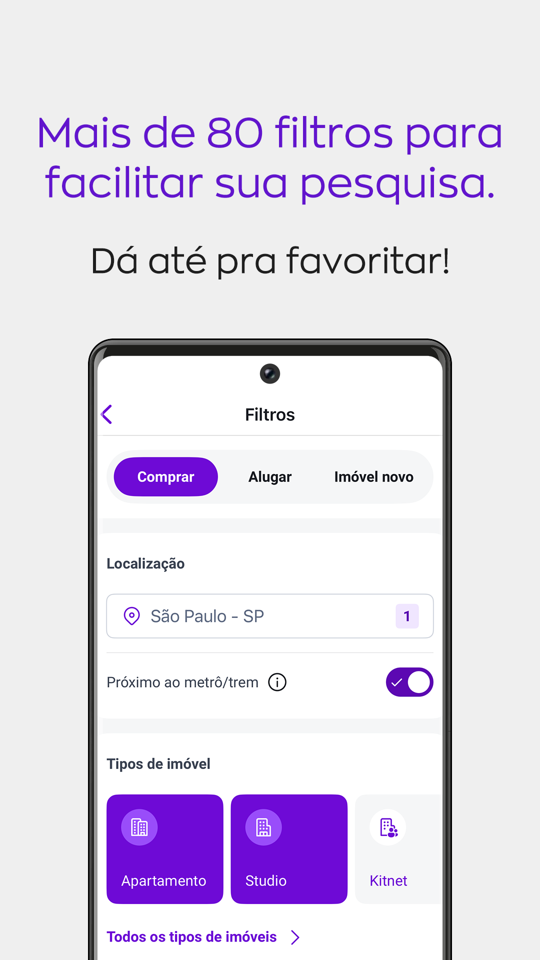Laden Sie die Zap Imóveis-App herunter und sehen Sie sich diese und andere exklusive Funktionen an.