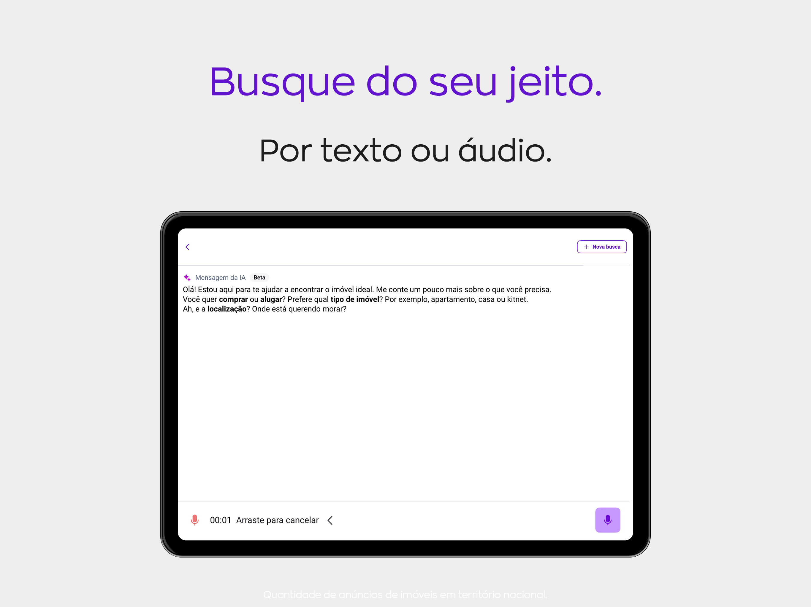 Finden Sie Wohnungen, Häuser, Wohneinheiten, Eigentumswohnungen und Grundstücke zum Kauf und zur Miete in jeder Region Brasiliens. Egal wo Sie sind, Sie können jederzeit von zu Hause aus über Ihr Mobiltelefon oder Ihren Computer auf unser Portal zugreifen und nach der Immobilie Ihrer Träume suchen.