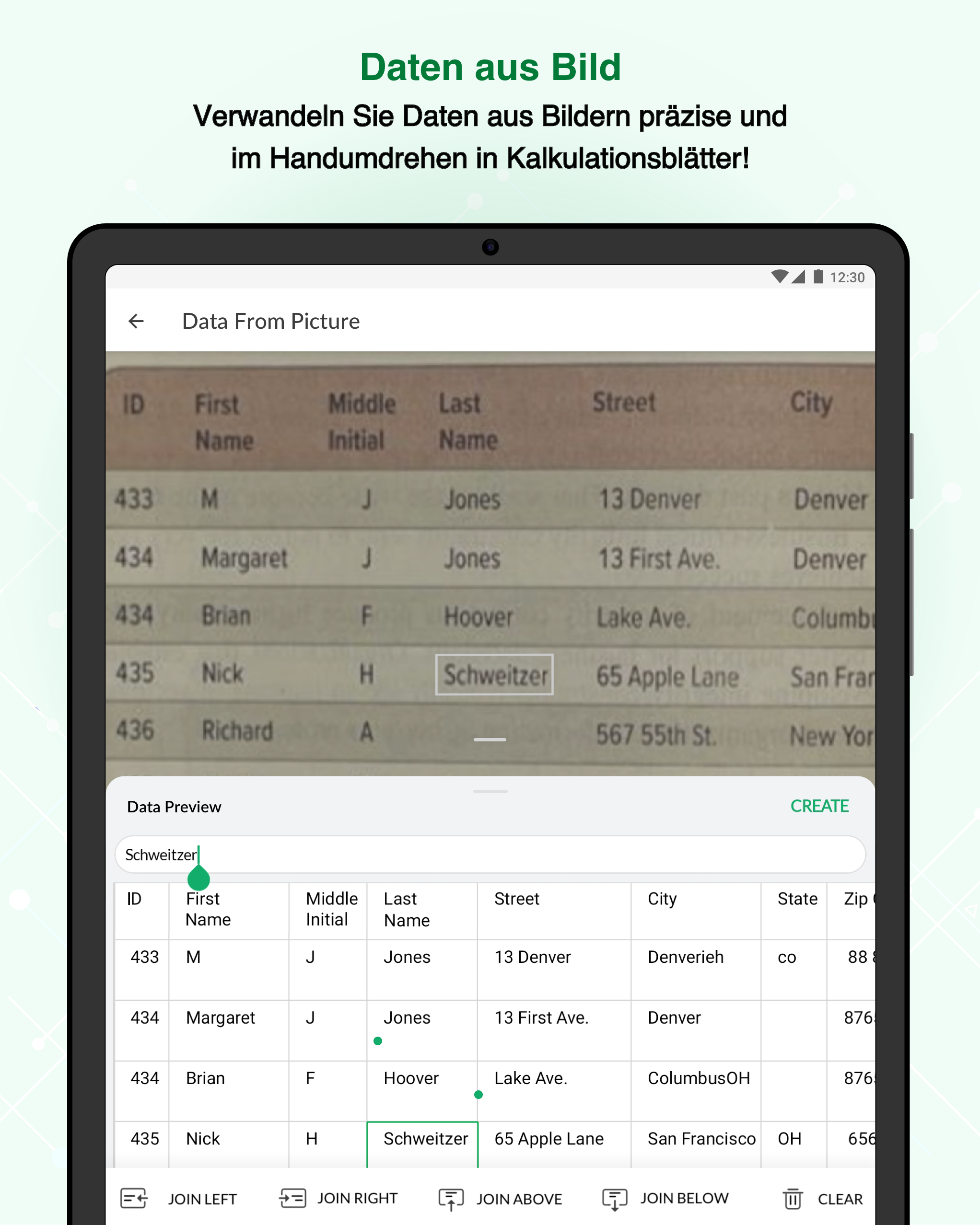 Erstellen Sie Kalkulationsblätter für Lieferantenrechnungen, Kundenrechnungen und Belege direkt aus Bilddaten. Verwandeln Sie Ihre Papierdokumente in ein paar Sekunden durch simples Scannen in Kalkulationsblätter.