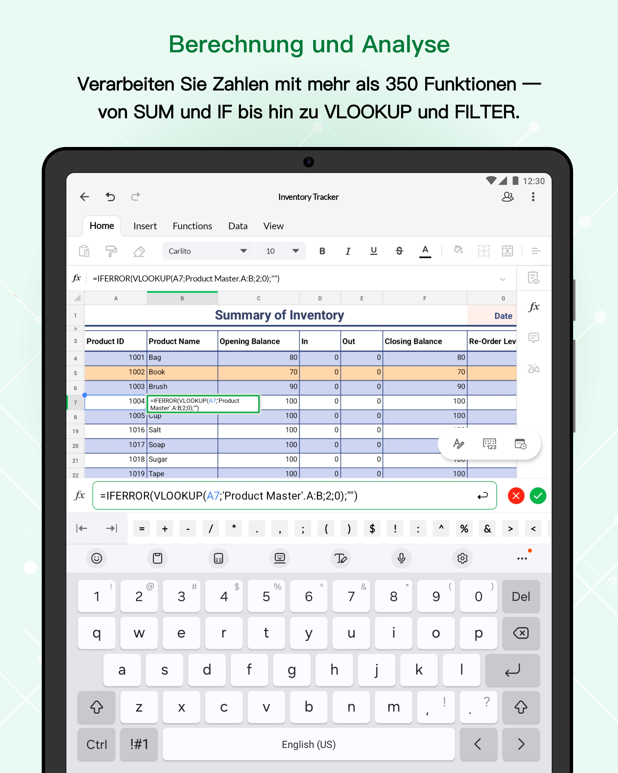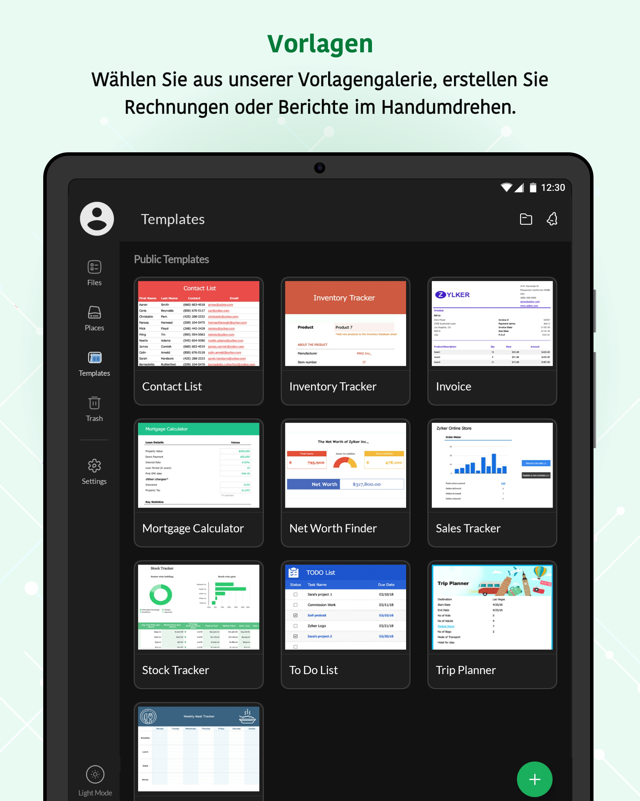 Erstellen Sie Kalkulationsblätter von Grund auf neu, verwalten Sie alles komplett in der App.