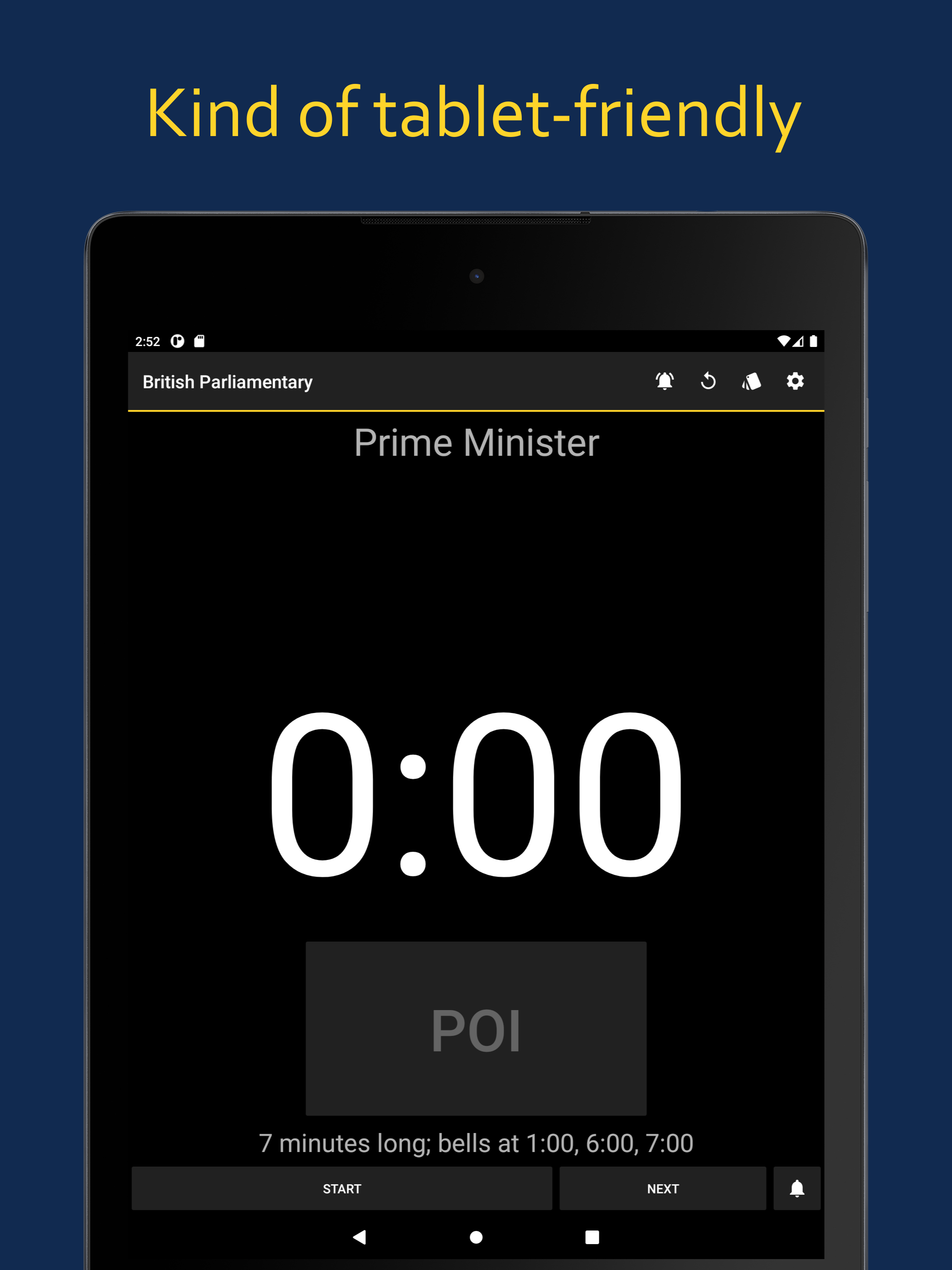 Let Debatekeeper take the hassle out of timekeeping! It will sound bells automatically at the right times, or it can vibrate and/or flash your screen as quieter cues, allowing you to focus your attention on the debate. Debatekeeper automatically switches to the appropriate speech time in styles that require it, e.g. those with reply speeches. It supports most parliamentary styles, including British Parliamentary (WUDC), World Schools (WSDC), Australs, American Parliamentary (APDA), Canadian Parliamentary, Asian Parliamentary (UADC), Australian Easters, and New Zealand university styles. More styles can be downloaded in the app from the online repository. You can also write your own debate format (style) in XML for the app to use—see the app wiki at https://github.com/czlee/debatekeeper/wiki for details. Submissions to the online formats repository are welcome: https://github.com/czlee/debatekeeper-formats Debatekeeper is also highly configurable with things like overtime bells and the preparation timer. (Debatekeeper does not support the American policy, public forum or Lincoln-Douglas styles, because it doesn't support prep time between speeches distributed at teams' election, sorry.) Advice for adjudicators: It can pay to make sure your debaters (a) know what the bell sounds like, so they don't think you just got a text message and (b) can hear the bell. It's normally loud enough in classrooms, but not lecture theatres; in those rooms you can use the vibrate/flash screen functions to remind you to clap.