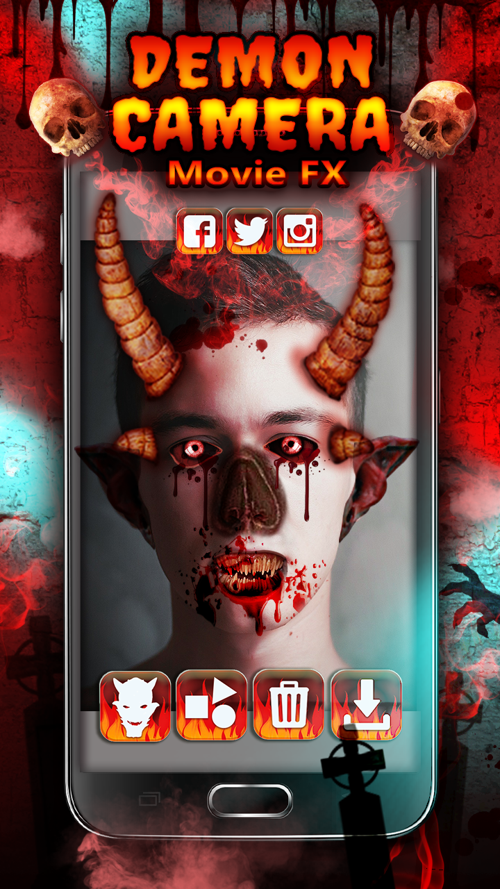 ✭ Are you looking for ideas to make the scariest pictures ever and prank your friends or family? And do you love gothic, mysterious and spooky creatures from horror movies? If so, then this “photo editor” is just what you need! It offers you many features to scare your friends, because it has a huge sticker collection where you can make awesome demon photos. Revive the most thrilling moments from your favorite horror movie by adding special fx and create an amazing photo manipulation. This free app for Android™ is a perfect choice for everybody, because it’s suitable for both kids and adults. Its user controls are very simple, so you just need to take a selfie or choose some photos from your gallery and start adding scary demon stickers with stunning “special effects” for real demon look. Our movie FX includes realistic stickers with frightening demon teeth, red eyes, “devil horns”, masks and many more stuff from your worst nightmares. Pick your favorite one, apply it on your photo and give your pictures a creepy touch. When you work is done, you can make a background wallpaper from your demon photo or share it on all your favorite social networks. Possibilities are endless, just download the best among creepy photo editing apps - ✭Demon Camera Movie FX ✭, and you’ll have hours of fun! ✭ A big collection of free demon stickers to improve your ordinary images; ✭ Decorate your pictures with “photo stickers” with most realistic horrible “demon face” effects; ✭ Modify your images by putting some cool scary text or quotes on them or add some stunning photo effects; ✭ Our photo app ✭ Demon Camera Movie FX ✭ is easy to use – just drag the sticker with your finger and place it on the picture; ✭ You can edit photo - zoom in, zoom out, remove the movie sticker or change its position; ✭ Save your spooky pictures in gallery or share them with your friends and family on Facebook, Twitter or Instagram. ✭ Do you enjoy watching horror movies with your friends? And do you also like editing your cool pictures with movie special effects? Then, be brave, download this evil dark scary app and watch the devil fire flames burn on your screen! If you really want to scare your friends, install this ✭ Demon Camera Movie FX ✭ - best free application, which will frighten everybody. Create amazing photos using awesome stickers and transport yourself to a horror story for some chills! This haunted “face changer” has a lot of scary effects by which you can easily make a hilarious scary experience. Everything you need to make your face look like the devil from Hell is here. So, stop your search for a perfect picture editor, because this one will take you right into a demon’s world! ✭ Unleash your imagination, create the most dreadful profile pictures, download one of the top photo editing apps for your device and make totally “creepy photos” to pull pranks all around. If you are a fan of the dark side and love scary demons, then this image editor app will be a perfect fit for you. ✭ Demon Camera Movie FX ✭ offers you many stickers to produce the best demon pics and also it gives you a chance to edit your family photographs and photos of your friends. ✭ Experience the magic of creative picture editing while experimenting with tons of cool photo stickers and stamps found in our new demon movie effects creator! Apply some special effects to your selfie photos to scare your best friends and practice your photo editing skills. Make the best “photo montage” ever! Download ✭ Demon Camera Movie FX ✭ and have a great fun during this scary journey through the creepy kingdom! *Android™ is a trademark of Google Inc.