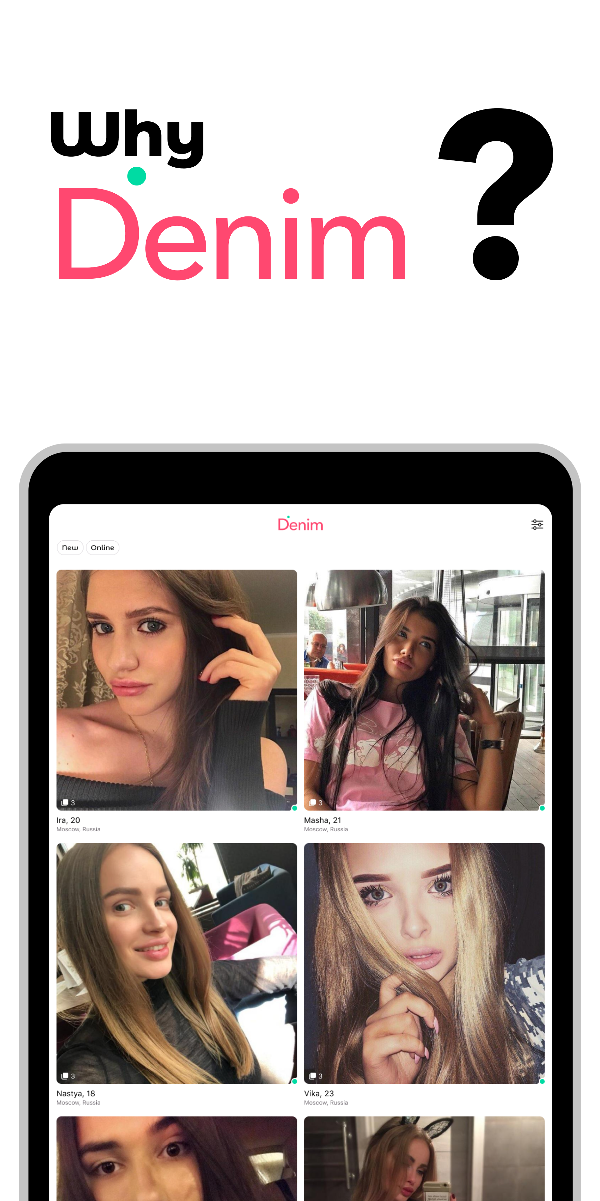 Denim is simple and safe way to meet new people! You can date men and girls nearby or connect with them all over the world. Dating foreigners has never been that fast and easy. Exclusively at Denim.