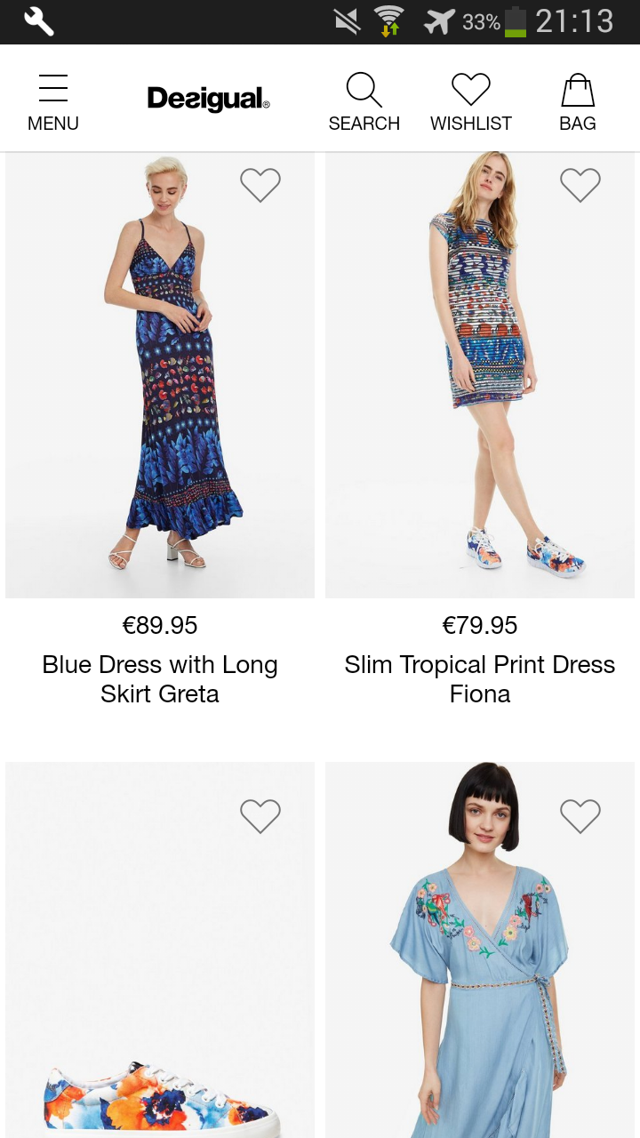 Desigual (Package Name: com.desigulay.bozigoyo) is developed by Regorioes Studio and the latest version of Desigual-Online Shopping 1.8 was updated on June 14, 2019. Desigual-Online Shopping is in the category of Shopping. You can check all apps from the developer of Desigual-Online Shopping. Currently this app is for free. This app can be downloaded on Android 4.0.3+ on APKFab or Google Play. All APK/XAPK files on APKFab.com are original and 100% safe with fast download.