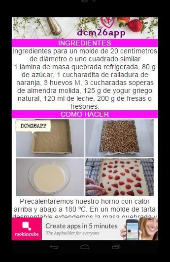 We will reveal these delicious recipes of homemade desserts ! They are super easy to make and require ingredients that generally already have in your home. Do not miss these delicious recipes for sweet delight or surprise your guests desserts. Download the free app for your mobile now! -Quesada Easy with yogurt and cinnamon Coffee -Bizcocho -Bizcocho Style apple chile -Brownie Of nutell ... -Crepes Filled with apple and caramel -Cheese Strawberries with yogurt -Cheese Caramel and banana -etc ......