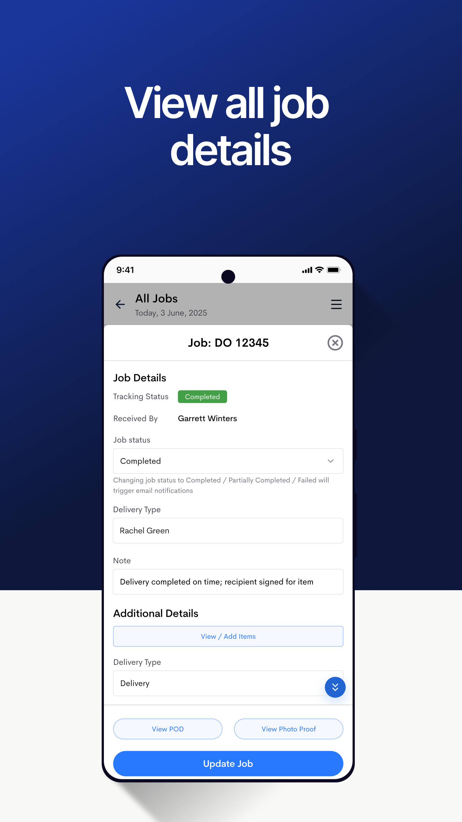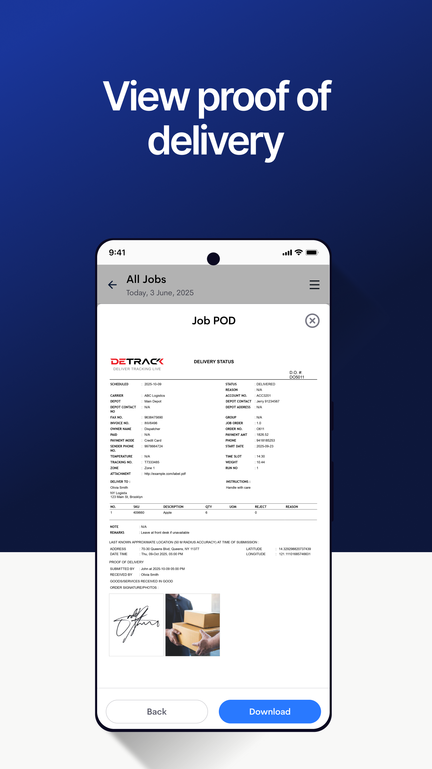 View proof of delivery - signature, 10 photos, time, date and location