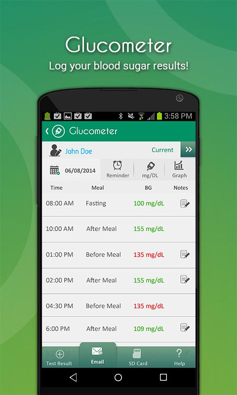 Food: Log all your meals in the Diet Diary. View easy to make, tasty recipes along with Diet Guidelines for the various types of diabetes and Superfoods that will help you to keep a check on your glucose levels.