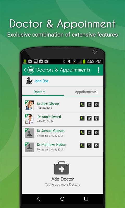 Doctors & Appointments: Maintain an extensive list of Doctors and call them from within the app. Add & view all your Current and Previous Appointments so that you never miss any.