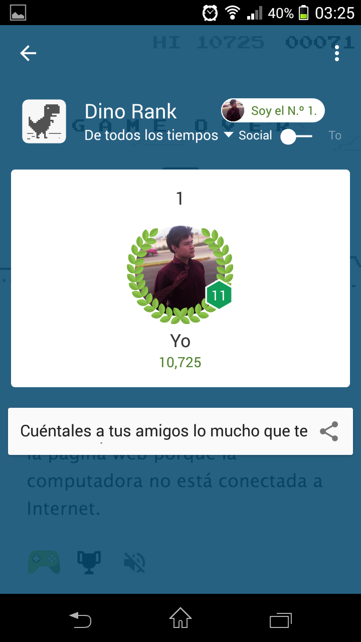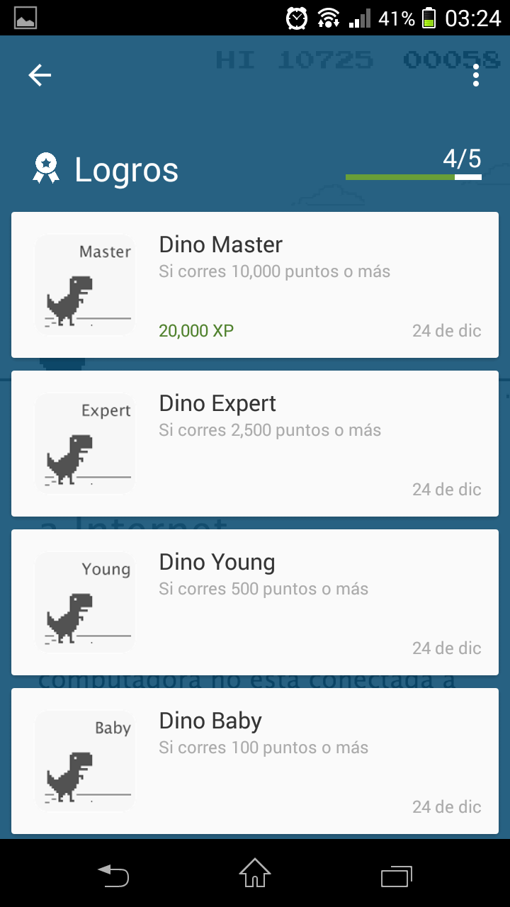 Has it happened to you when you run out of the internet that you have that funny dinosaur? If you hit the "space" key you will find a fun game that the big ones of Google did not stay so frustrated :D Yes, we know, the game is currently in the Google Chrome browser and you are free to use it before downloading from here. But come on, you can play and receive your Whatsapp® notifications at the same time, right? - Background: It was a cold night of December 2014, Christmas was approaching and everyone seemed to be anxious about those dates. Everyone would receive gifts and eat until they explode. Google, as expected, surprised us with a fun gift not to frustrate us by running out of the internet. This nice friend, T-Rex, who comforted us in those moments of desperation without connection. Everything was so beautiful until I realized that Google had not yet released any version for mobile so, cooled and with the laptop open, I started to develop a version of this fun game for mobile devices. Everything was so beautiful, everyone played, everyone liked it until ... ... Yes, at last Google released its version for mobile in Google Chrome for Android and iPhone and well, the rest is history. ** Welcome to the Haters! ** - This game has been developed 100% with love and non-profit, just to have fun and relax for a while. So, do not be bitter and enjoy it! :D - I also leave the code in github for the curious ;) Https://github.com/dannegm/DinoChrome