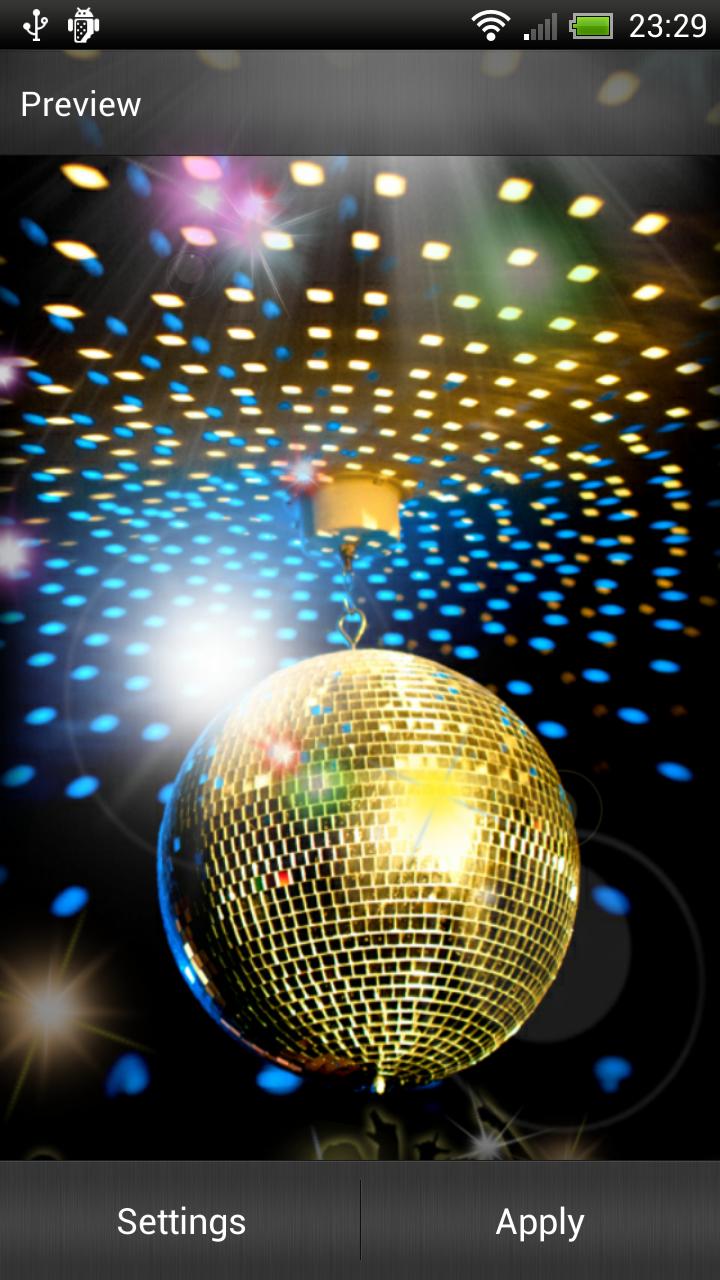 Disco Light Live Wallpaper for every party maniac in town! A night out will never be the same once you download Disco Light Live Wallpaper. Several baskgrounds of magnificent colorful disco light- blue, red, pink. Be in the spot light with a disco ball on your very own phone screen! Silver disco ball- sparkle, glitter and shine with style! Don't lose time, download Disco Light Live Wallpaper now, enjoy lovely colors and boogie! - Amazing 3D live wallpaper for your phone! - Interactive feature: Tap on the screen and new lights will appear immediately! - There is full support for landscape mode and home-screen switching! - This beautiful, free and enjoyable background is waiting for you! Installation instructions: Home -> Menu -> Wallpapers -> Live Wallpapers Disco music might seem outdated now, but gorgeous colors of disco light and classic disco ball will never become obsolete. Fabulous rainbow on the dance floor makes you dance with the old classic records. And while you're dancing and enjoying yourself, a magnificent disco ball shines over your head like a star. The fun is unsurbassable! There's nothing else like it. Today you cannot easily find a club that plays disco music, a modern DJ prefers livelier beats and rhythm, but in every single club you will find a disco ball. Dark club and colorful lighting make the ideal atmoshere for night fun. The only thing missing in this picture is a disco ball. Disco balls sparkle, glitter and shine wonderfully, without that shine the atmosphere is simply not complete.Dark room and colorful light create romantic and at the same time exciting atmosphere. Are you ready to boogie? DJ turn up the music! Go to the nearest club with friends, but first make sure that club is a real disco, meaning that it has a true disco ball and lighting. But what is the origin of this shiny ball? Has it existed before the disco era? While disco is frequently the butt of jokes, no one can deny the mesmerizing effect of a spinning disco ball. Covered in hundreds of tiny mirrors, the disco ball spins light around the room and can instantly transform a dull event into a party. Although most people associate disco balls with platform shoes, Studio 54 and other staples of the disco craze, the disco ball actually predates disco by more than 50 years.A staple of many 1920s nightclubs, the mirror ball (as it was called then) never fully took off until the right blend of music, lights and colors combined to create a craze in the 1970s. Disco's repetitious grooves and the disco ball's hypnotic glow worked in tandem to ensure the mirror ball's place as an undying symbol of the disco era.After disco, the disco ball became commercialized. Today, the mirror ball is visible in many aspects of everyday life. From disco ball earrings to hipster lounges that spin the ball for the appropriate atmosphere, the disco ball permeates American life far outside the realm of disco. Unlike polyester suits, the mirror ball has survived the death of disco and is now as beloved as the strobe light. Proms, concerts and late-night makeout sessions all benefit from the multi-mirrored surface of the disco ball. “Night life” would never be the same without the recognizible light from the beloved mirror ball. Don't miss this opportunity to get this fabulous shiny symbol of the disco era. Download Disco Light Live Wallpaper now and dance till you fall under red, blue, green and pink light. DJ play the music louder!