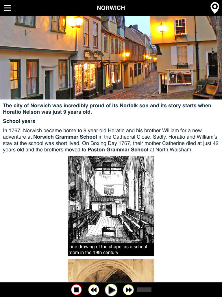 Horatio Nelson was undoubtedly a hero – many would say the greatest that Norfolk has produced and certainly one of the greatest maritime heroes of all time. Nelson’s story is an epic adventure into history that started in a small Norfolk village and ended in victory at the biggest naval battle the world had ever seen. Fast forward 200 years and the legacy of Vice Admiral Sir Horatio Nelson lives on, especially in his home county of Norfolk where there are constant reminders of the great man. Come on a journey with us and Discover Nelson’s Norfolk. Places Covered: BURNHAMS: Burnham Thorpe, Burnham Market, Brancaster Staithe, Burnham Overy Staithe, Holkham Hall, Wells-next-the-Sea, NORWICH: Norwich Castle, Assembly House, Guildhall, Suckling House and St Andrew's Church, St Andrew's Hall and Blackfriars' Hall, Norwich School and Cathedral Close, Maid's Head Hotel, NORTH WALSHAM: Paston Grammar School, Barton Broad, Happisburgh Church, Mundesley, Trunch, Wolterton Hall SWAFFHAM: Bradenham, Hilborough, Swaffham and Strattons Hotel, North Elmham GREAT YARMOOUTH: Nelson Museum, Town Hall, Row 57, Wrestler's Inn, Great Yarmouth Minster, Nelson's Monument.