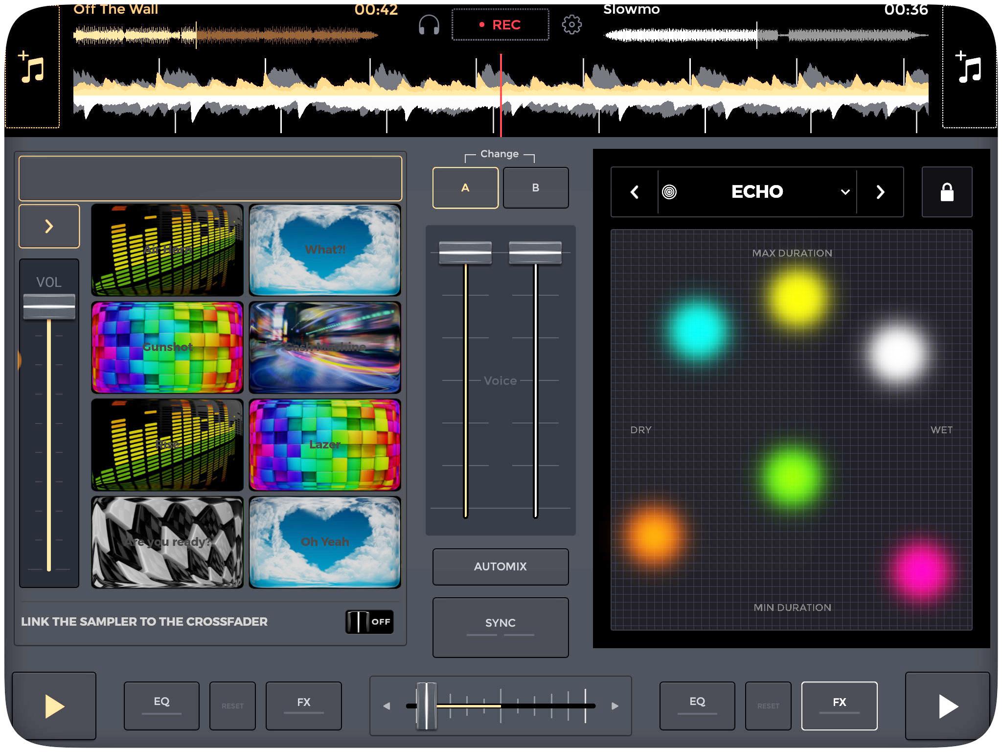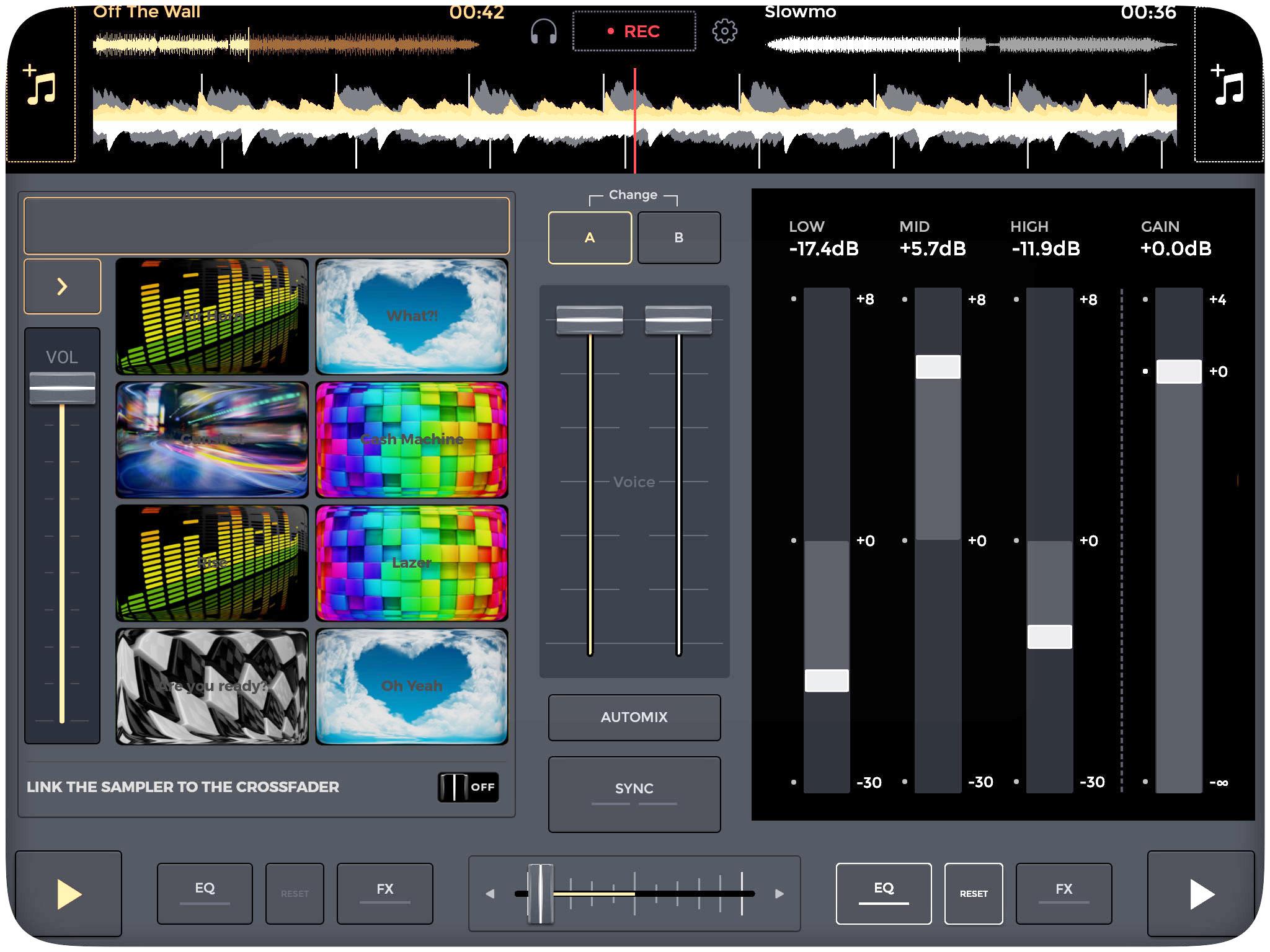 ♫ DJ MiX – DJ Mixer Music have bands equalizer for each deck ♫ Music background play mode: listen to your favorites songs while consulting other apps ♫ Visualizers : DJ MiX – DJ Mixer Music link audio with visuals. Watch your sound move thanks to 5 different awesome effects for mixer music ♫ Sampler music, mixer sampler for mixer music: 12 sample banks + possibility to record your own samples ♫ Seek within track, show elapsed and remaining time, play 2 songs simultaneously and cross-fade between them ♫ DJ MiX – DJ Mixer Music support for you many audio FX, mixer effect: Flanger, Phaser, Echo, Gate, Bit Crusher, Classical, Club, Dance, Full Bass, Full Bass and Treble, Full Treble, Headphones, Large Hall, Live, Party, Pop, Reggae, Rock, Ska, Soft, Soft Rock & Techno (create your own sound) ♫ Button click fade – it’s like auto fade on clicking the buttons ♫ DJ virtual 3D style compatible with smartphones and tablets. ♫ automatic BPM (Beats per minute) detection for all your songs ♫ Tap BPM feature to manually adjust the BPM of your tracks ♫ continuous sync between your two tracks ♫ a little audio spectrum to navigate in your music ♫ a wide audio spectrum for optimised beats detection ♫ pro audio FX: Echo, Flanger, Reverse ♫ audio FX expansion (in-app purchase): Roll, Filter, Steel, Color Noise, Beatgrid...and more! ♫ automated audio FX sync on the beats (loop, cue, seek) ♫ loops: from 1/4 to 8, or customizable through 'in' and 'out' point ♫ set up to 4 Hot Cues on each deck ♫ EQ three bands and Gain ♫ Pre-cueing with headphones (in-app purchase) ♫ Automix mode to let edjing mix and do seamless transitions between your tracks ♫ ultra precise scratch ♫ a "Slip" mode that can be activated for Loops and Scratch ♫ HD recording of your mixes and scratch routines in .wav format ♫ 4 skins to customize your turntables (in-app purchase): Diamond, Gold, Neon, Metal ♫ 3D transition effects on screens and folders switching for DJ. ♫ Smart Recoded Dj Mix Music - Mixer dj 3d sound player ♫ DJ Music Mixer Recode and play mixer dj ♫ Mixer dj 3d sound player ♫ DJ Music Mixer supports Music Equalizer lets you adjust sound effect levels so that you get the best sound. ♫ Music Equalizer is a volume slider with five band Equalizer with Bass Boost and Virtualizer effects. ♫ With DJ Music Mixer you have Equalizer Music basically makes it possible for you to mix, edit and customize the sound of your tracks to ensure an optimal music listening experience. ♫ 3D DJ Music Mixer play 2 songs simultaneously and cross-fade between them ♫ Control volume and pitch from vertical slider ♫ Select the effects to give from the given list ♫ DJ Music Mixer utterly adjustable music mixing deck ♫ Export Dj Music Mixer to Video DJ with image ♫ 3D DJ Music Mixer to Video and Share social ♫ Elegant and simple DJ virtual 3D screen navigation. ♫ Screen management interface for DJ virtual 3D with incredible 3D effect. ♫ Astonishing DJ music mixer weather widget. ♫ Very small, will not affect system performance. Equalizer & DJ Studio Music allows you to play two songs at the same time from your SD card ♫ Battery save function. We’re always trying to make DJ MiX – DJ Mixer Music better !!