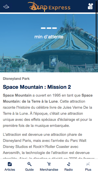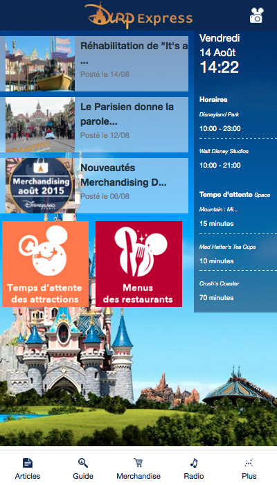 Dlrp Express vous présente son application pour Android ! 100% gratuite ! -Soyez informés de toute l'actualité de Disneyland® Paris ! -Consultez tous les temps d'attentes des attractions ! -Ayez accès à guide complet pour préparer votre séjour (attractions, boutiques, restaurants...) ! -Enregistrez vos FastPass® directement sur votre mobile* ! -Consultez les horaires d'ouvertures et de fermetures ! -Affichez les attractions fermées / en réhabilitation ! -Ecoutez les musiques des parcs Disneyland et Walt Disney Studios 24h/24 ! -Et plein d'autres fonctionnalités...magiques ! Dlrp Express pour Androïd est l'application idéale pour préparer votre visite à Disneyland® Paris, et vous faciliter la vie une fois sur place ! * Ne remplace en aucun cas les FastPass® normaux dont vous devez vous munir pour accéder plus rapidement aux attractions.