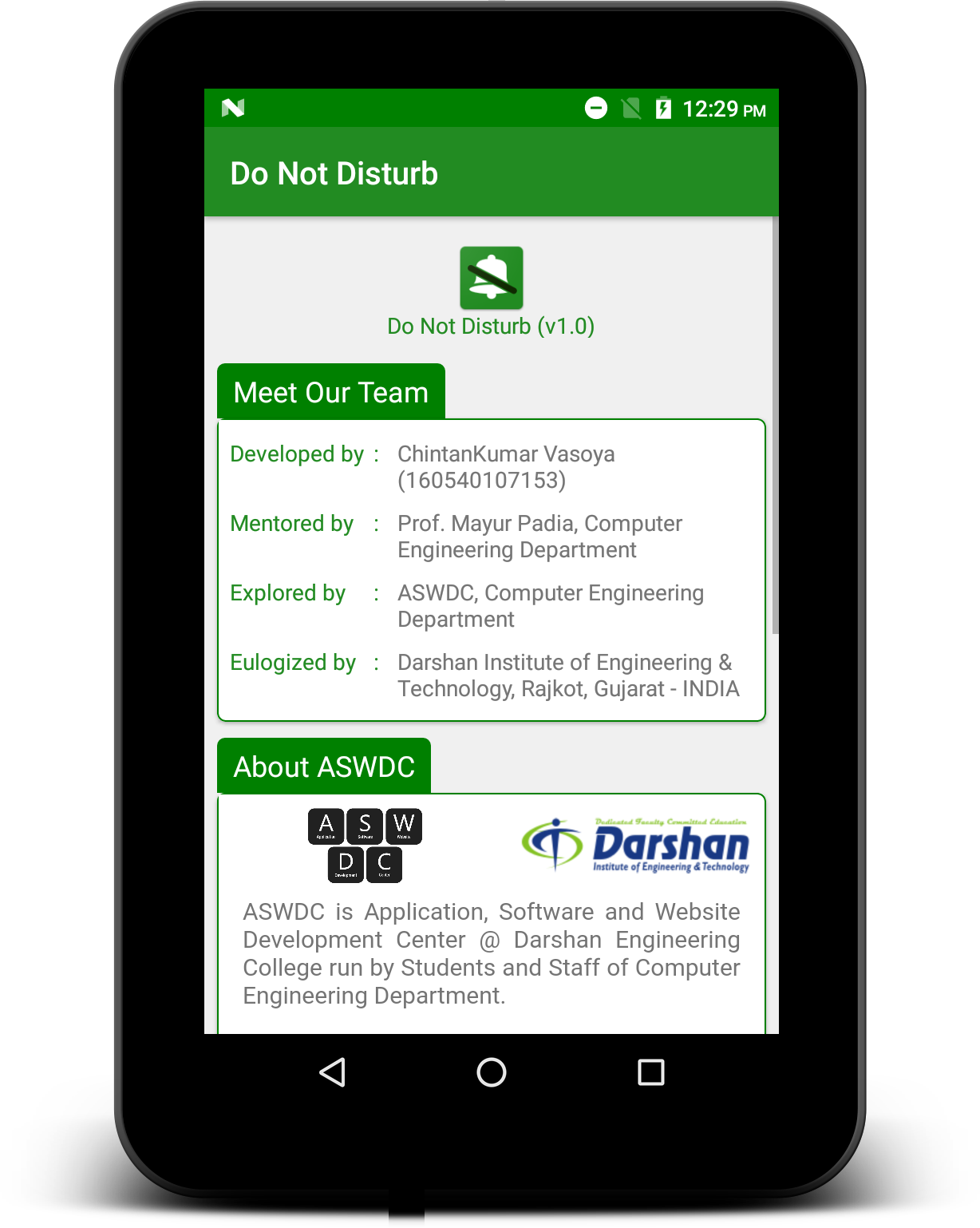 This App is developed at ASWDC by Chintankumar Vasoya (160540107153), 6th-semester CE Student. ASWDC is Apps, Software, and Website Development Center @ Darshan University, Rajkot run by students & staff of Computer Science and Engineering Department.