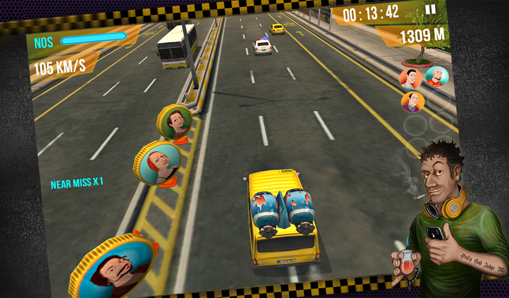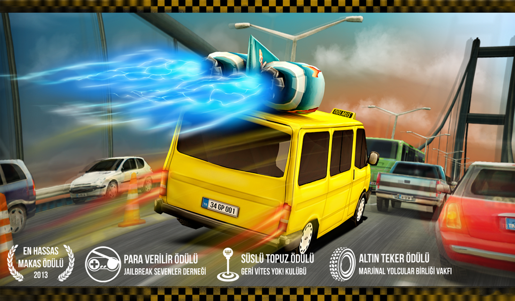 *** Optimized for Intel x86 mobile devices *** "You have to drive as fast as you can, without crashing or getting stopped by the police. Are you skilled enough to rule the streets of Turkey?" - www.appadvice.com Dolmus is a kind of shared taxi. These vehicles have routes without timetables, but instead departing when all seats are filled. 4 Heroes called Genco, Dayi, Kral and Nebo 3 Tracks in Istanbul; Bakirkoy - Taksim, Besiktas - Taksim, Kadikoy - Taksim Take more passengers and earn more money! ------------------------------- Dolmus Driver features: ● 4 Fancy Cars and Drivers ● 3 Different Tracks ● 6 Amazing Jetpacks! ● 14 Unique Sets of Horns! ● Colorful Decals ● 1000 Turkish Voiceover ● Super Powerful NOS Bonus! ● Easy and Fun to Play ● Lots of Funny Passengers ● Leaderboards for You and Your Friends ------------------------------- "The nation of Turkey has its own kind of taxi cabs called "dolmus," which will only leave from where they're parked when enough seats inside have been filled by passengers. Dolmus Driver HD, then, is kind of like Sega's Crazy Taxi – only with a whole lot more virtual people crammed into the backseat as you thread your way through traffic at unsafe speeds." - July 19 Game Debuts, IGN I usually learn absolutely nothing from most of the apps I play, and credit the Dolmus Driver developers for teaching me a thing or two about the world outside my door. - www.arcadesushi.com, by Greg Srisavasdi Einsteigen, anschnallen und mit Dolmus Driver HD auf eine wilde Taxifahrt durch die Metropole der Türkei kommen. - www.appgefahren.de Il tutto per un gioco che, se non ha le caratteristiche per incollarvi per ore ed ore allo schermo dell’iPad, certo rappresenta un buon modo per ingannare il tempo divertendosi e “assaggiando” un po’ del sapore della Turchia. - www.macitynet.it, Andrea Gilardoni Un jeu de taxi partagé avec une camionnette jaune particulièrement bien équipée .... en fusées. - www.iphon.fr Dolmus Driver heeft een eenvoudige besturing waardoor de game ook erg vermakelijk voor kinderen kan zijn. - www.applespot.nl, by Amrish Gayadien Dolmus Driver HD is een bizarre racegame die zich afspeelt in… Turkije! Jawel in Istanbul, met een raket op je wagen… klinkt bijzonder en zeker origineel! - www.ipadblogs.nl ------------------------------- THANK YOU goes out to everyone who has played Dolmus Driver! facebook.com/DolmusDriver