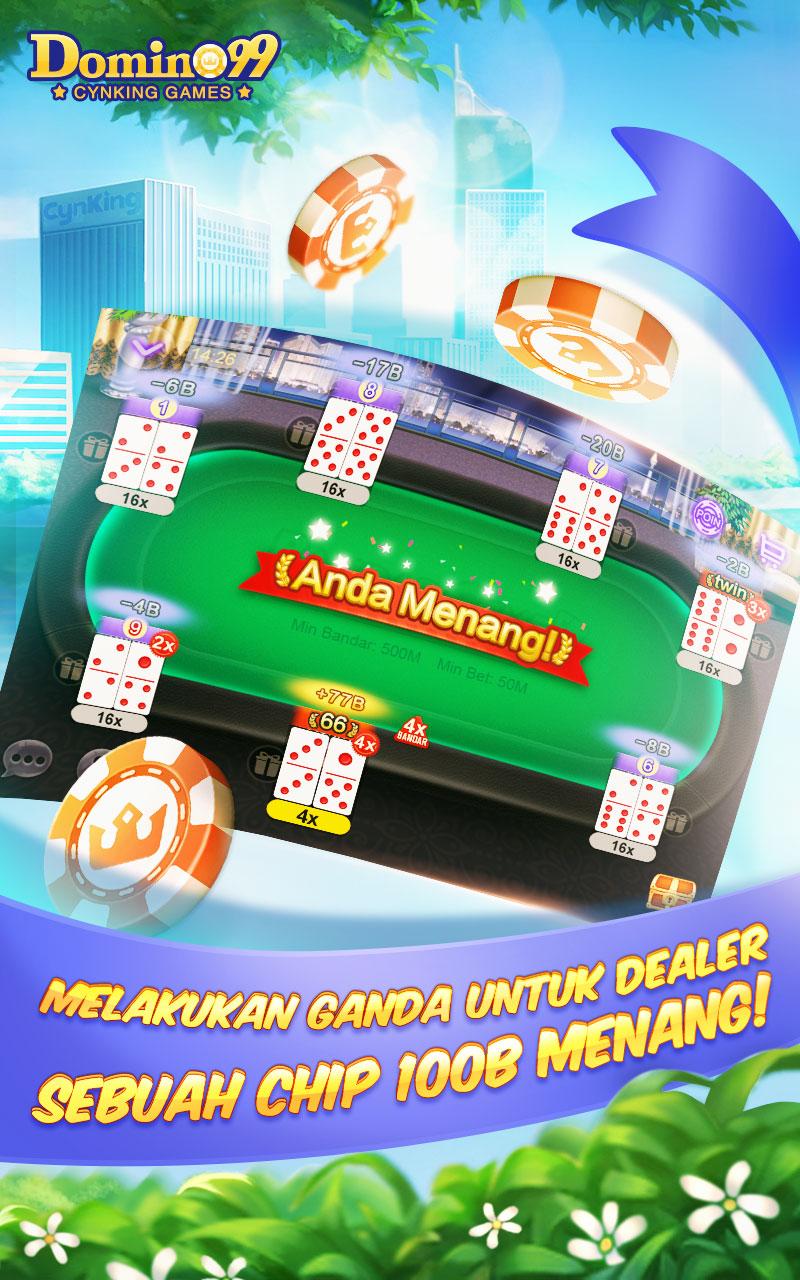 Update Ver 2.1.0: 1. Perubahan dan mempercantik halaman pada lobi Domino 99 2. Klik foto untuk memperbesar foto agar lebih jelas dan jernih 3. Sekarang pemain dapat dari room mengundang teman untuk main bersama 4. Khusus pemain VIP, bantuan bangkrut menjadi 2x lipat bonusnya lho! 5. Komplain Menu! Pemain yang di BAN dapat komplain langsung di halaman login 6. Menjaga keamanan akun pemain dari hacker atau perilaku abnormal lainnya agar tercipta suasana bermain yang aman dan bersih