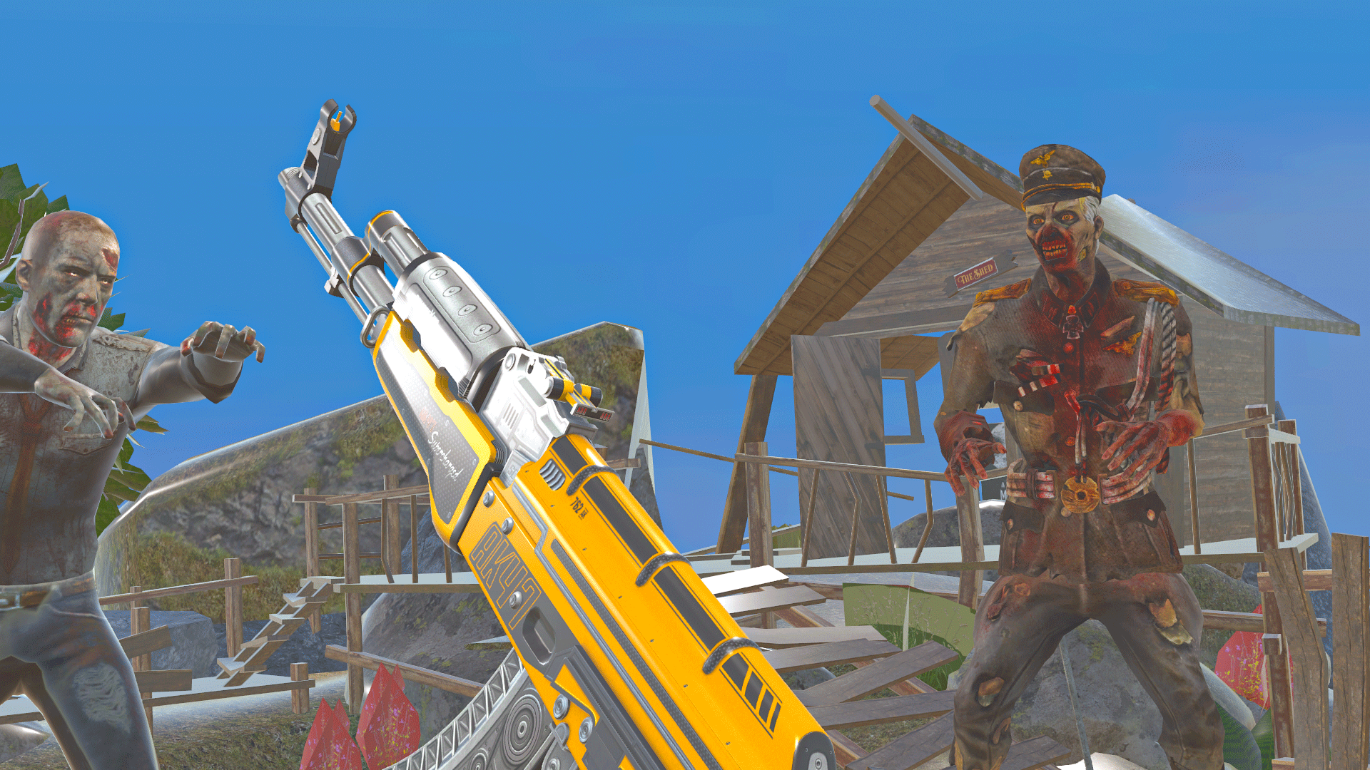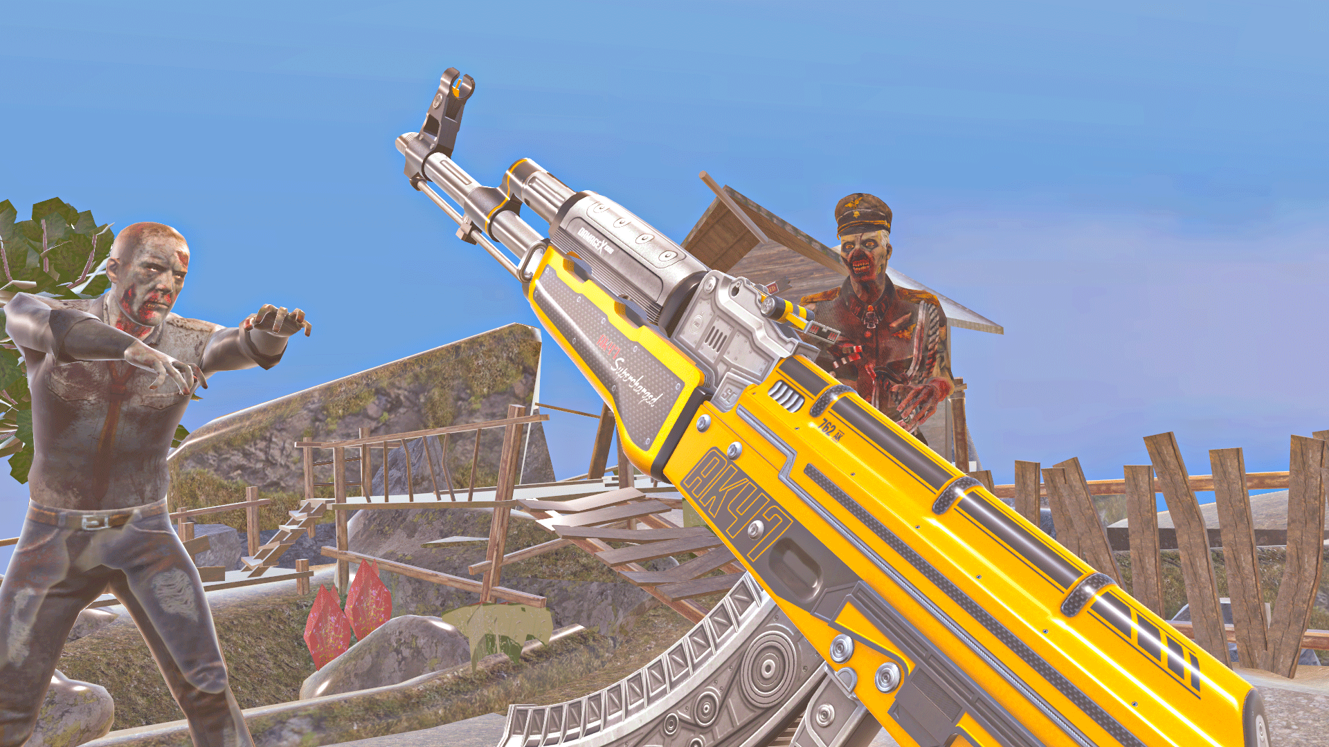 Shooting Guns and Machine Guns can help you deal with these stupid zombies