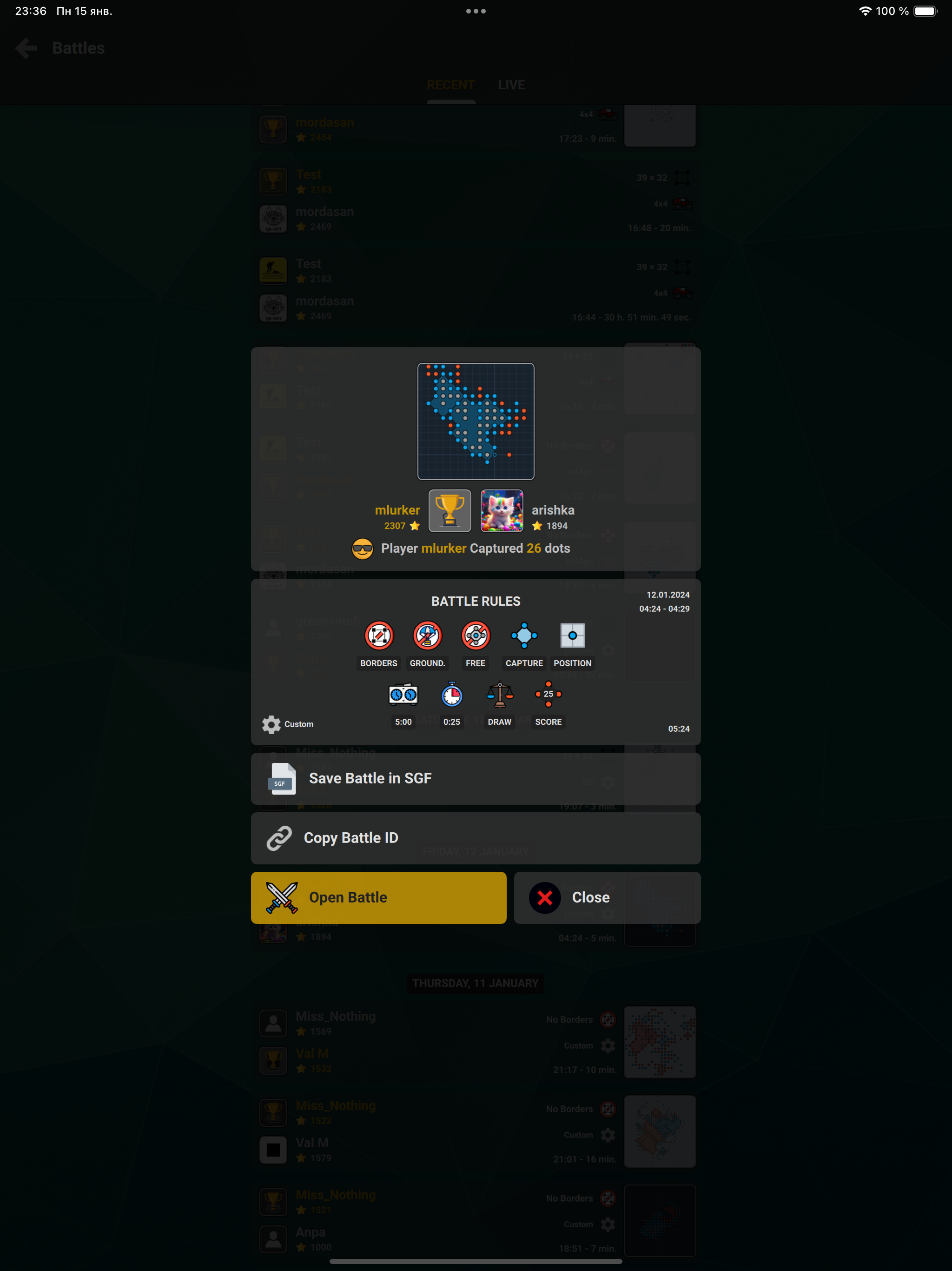 ▫️ Fixed returning to battle after closing the application