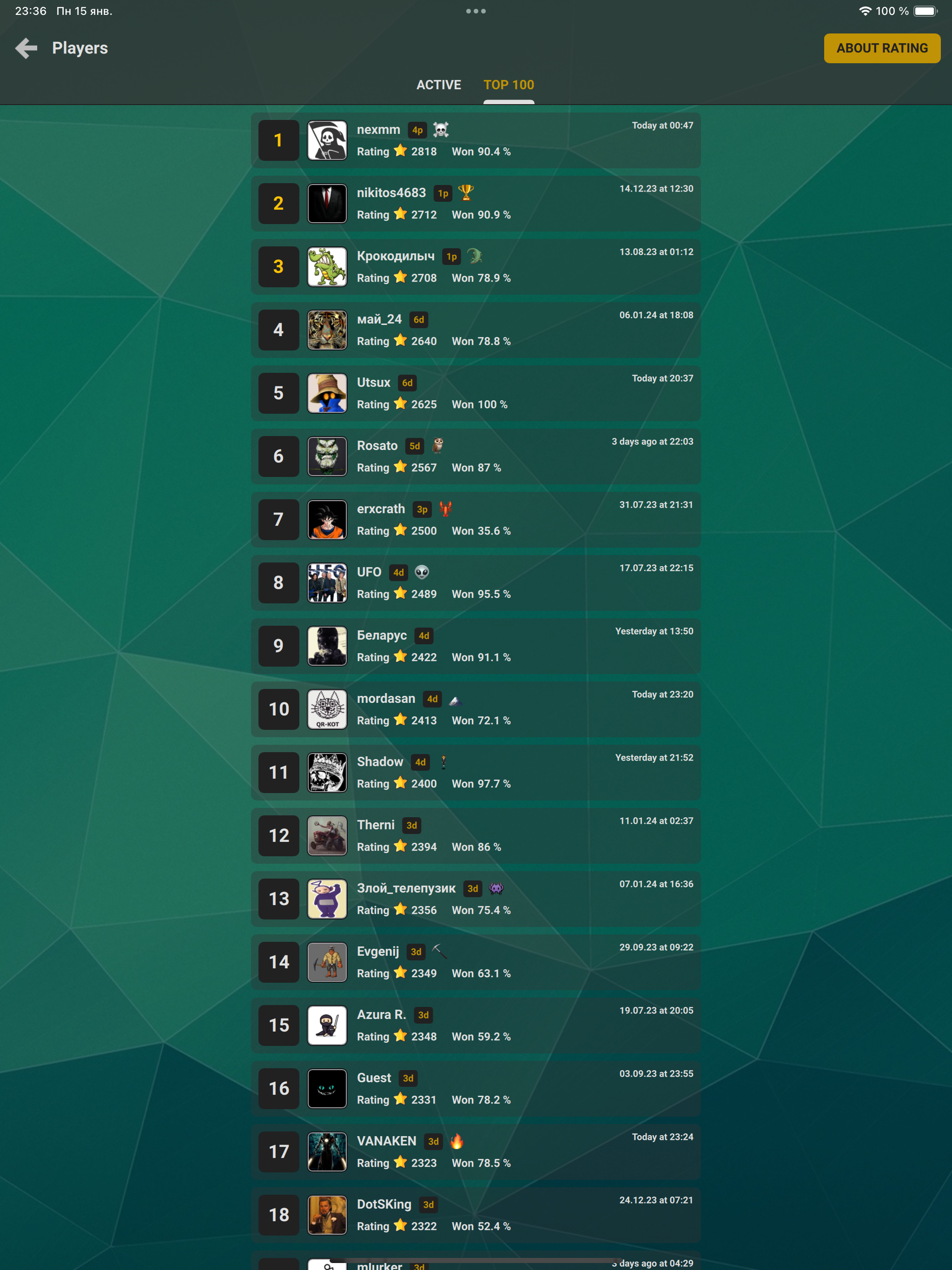 ▫️ Random Duel ▫️ Random Keep Out Points in random battles ▫️ Double Instant Battle Messages ▫️ In game Player's Battle Picture ▫️ Stop Battle after several connect/disconnect issues ▫️ Show Hided Tuning Settings