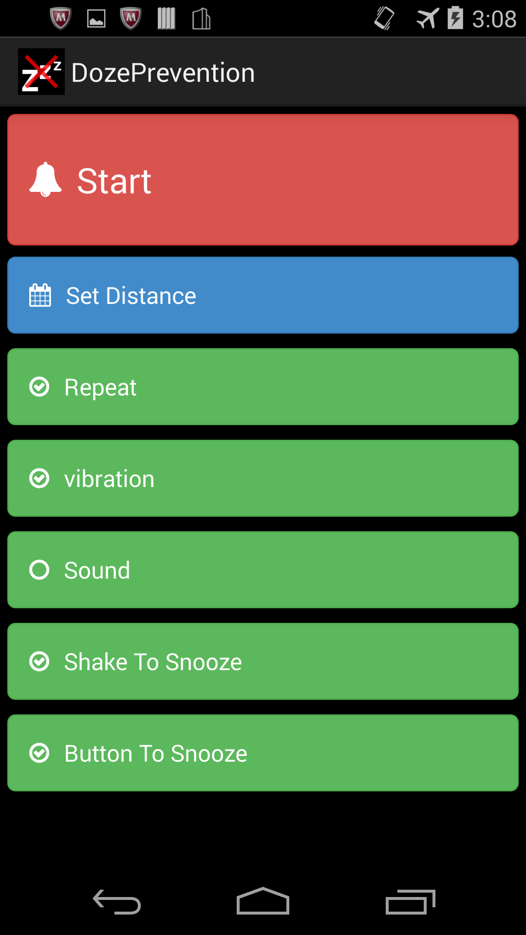app to prevent dozing ※ sleep during meeting or class. ※ The overslept train ※ Meditation, and awareness of Zen meditation. In such, there are many and scenes that should not be sleeping. However, there is also when you can not stand in the lack of sleep, etc.. At that time, please try this app. to you to warn at Vibe for each set of seconds You. If you have been sleeping and awakened at Vibe. ※※※※※※※※※※※※※※※※※※※※※※※※※※※※※※ ※※※ use scene ※※※ ※※※※※※※※※※※※※※※※※※※※※※※※※※※※※※ ■ in a meeting, in class, in the scene that should not be sleeping sleeping When sleeping likely, for example, is set to 30 seconds To start. Also firmly vibration Firmly grasp and by hand, etc., to recognize and Please. Then the smartphone every 30 seconds And notify the warning vibration is operated To you. If you if you had if fell asleep, Will awakened by this warning. Absolutely sleeping it is useful at a conference, etc. do not. ■ by train, etc., when you arrive a little more later, When the snooze is likely to set, for example, 60 seconds And then you can start. Also the vibration Firmly by hand, etc. to firmly recognized Please hold. Then the smartphone every 60 seconds The notice warning of vibration is operated To you. If you if you had if fell asleep, Will awakened by this warning. Although absolute Do not spend the station, It is best if nap that are likely. ※※※※※※※※※※※※※※※※※※※※※※※※※※※※※※ ※※※ use ※※※ ※※※※※※※※※※※※※※※※※※※※※※※※※※※※※※ ■ auto repeat • Vibe for each If you set the ON seconds Once I will tremble. • until the and stop operation to set the OFF Vibe is trembling. ※ If you set the auto-repeat, Sheikh stop, button stop Disabled. ■ Shake stop • Warning Vibe will stop at ON Sheikh. • OFF Sheikh stop function will stop. ■ button stop • warning Vibe at ON stop button Will stop. • OFF stop button function will stop. ※※※※※※※※※※※※※※※※※※※※※※※※※※※※※※ ※※※ version up plans ※※※ ※※※※※※※※※※※※※※※※※※※※※※※※※※※※※※ The future, we plan to upgrade in the contents of the following And we have. Also, if there is another request, another function The is scheduled to be implemented in priority. • Speaker alarm function • earphone alarm function • Game stop function ※※※※※※※※※※※※※※※※※※※※※※※※※※※※※※ ※※※ attention ※※※ ※※※※※※※※※※※※※※※※※※※※※※※※※※※※※※ ■ in smartphone settings sound, Please use the vibration in on. ■ sleep is especially badly, by vibration If you do not happen to use this app You can not. ■ when using firmly body with vibration Please do recognize. I's Free, so try.