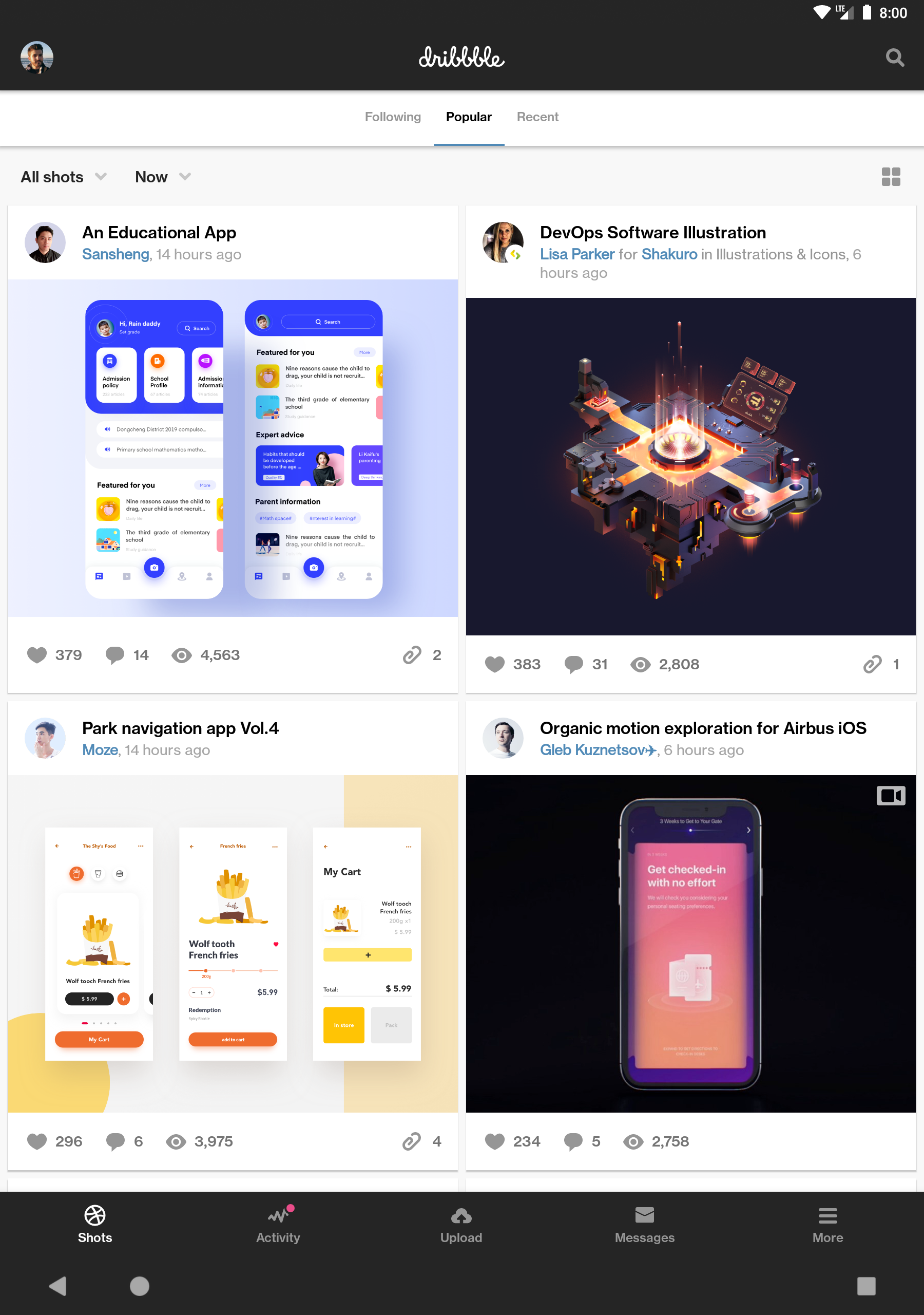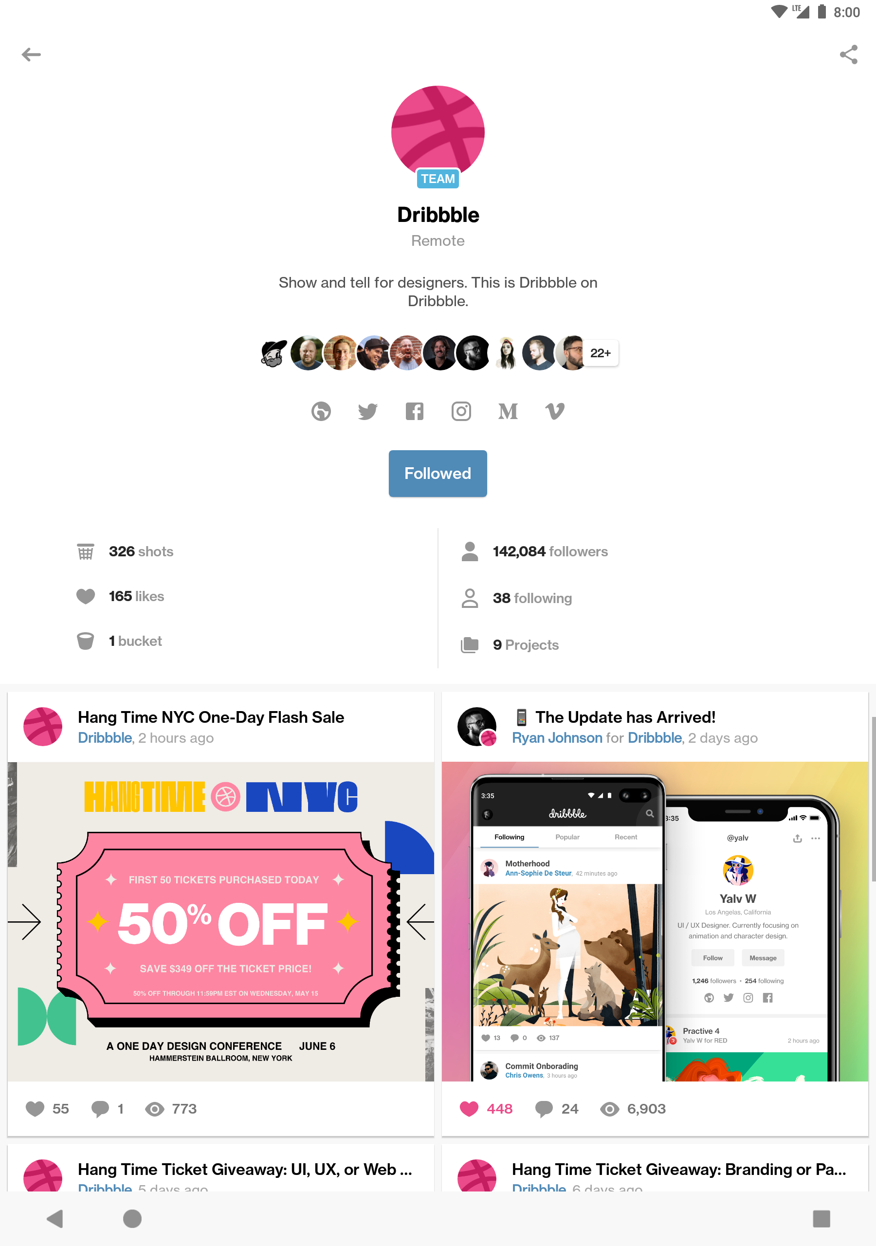 Dribbble's official app for Android. Discover and follow the world's best designers. Browse and curate amazing design work faster and easier. -- HIGHLIGHT REEL - Browse popular shots, recent shots, and shots from people you follow - See designers' profiles and follow them - Search for shots - Upload shots (images, GIFs or videos) - Double tap a shot in a list to like it - Open shots directly from Dribbble links - Spare your eyes at night with the dark theme —— ABOUT DRIBBBLE Founded in 2009, Dribbble has grown to become the premier community for discovering and connecting with designers around the globe. Our mission is to help the world’s design talent share their creations and get hired. Illustrators, icon artists, typographers, graphic designers, logo designers, web designers, and other creative types share their work, process, and current projects.
