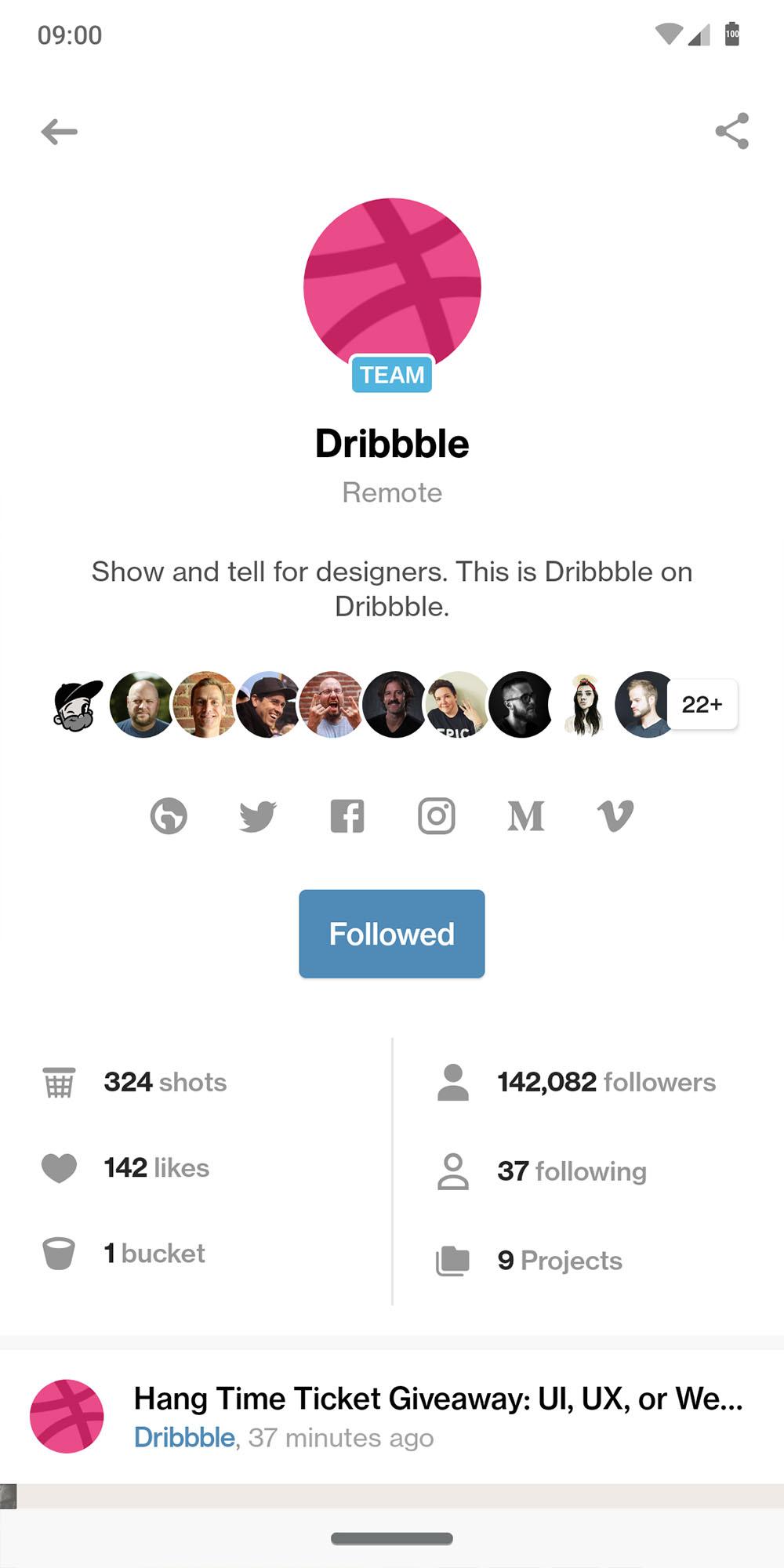 – Introducing a brand new navigation. – Removed the 'Explore' section and replaced it with quick filters in the Popular and Recent shots feeds. – New sign-in flow: it is now possible to sign in via Google, Twitter and Facebook within the app. – Redesigned Activity, Shot Details, Search and Upload flow. – Lots of UI improvements were made throughout the app. – Simplified the 'add to bucket' flow. Also, you can now remove a shot from a bucket. – And much more. See complete changelog in the app!