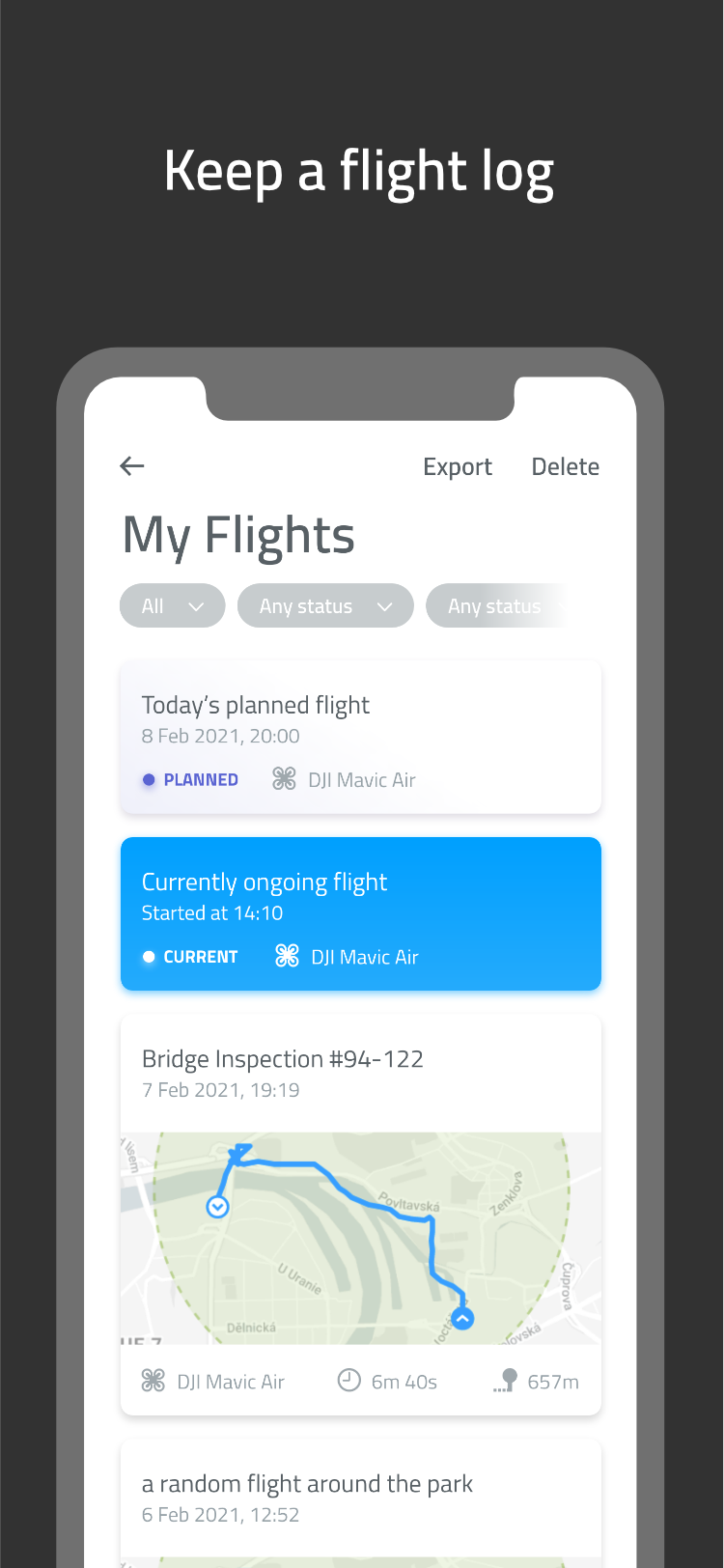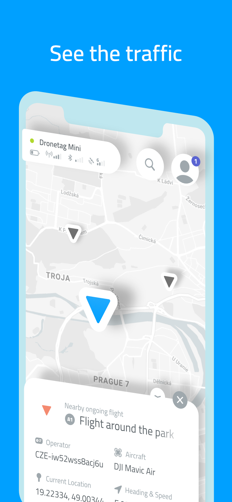 With Dronetag, all drones fly safe & compliant. Our app helps everyone to receive and read drone identification data and offers a wide range of professional features to owners of Dronetag remote identification devices. We create a world where all drones can access airspace without the need to worry about accidents.