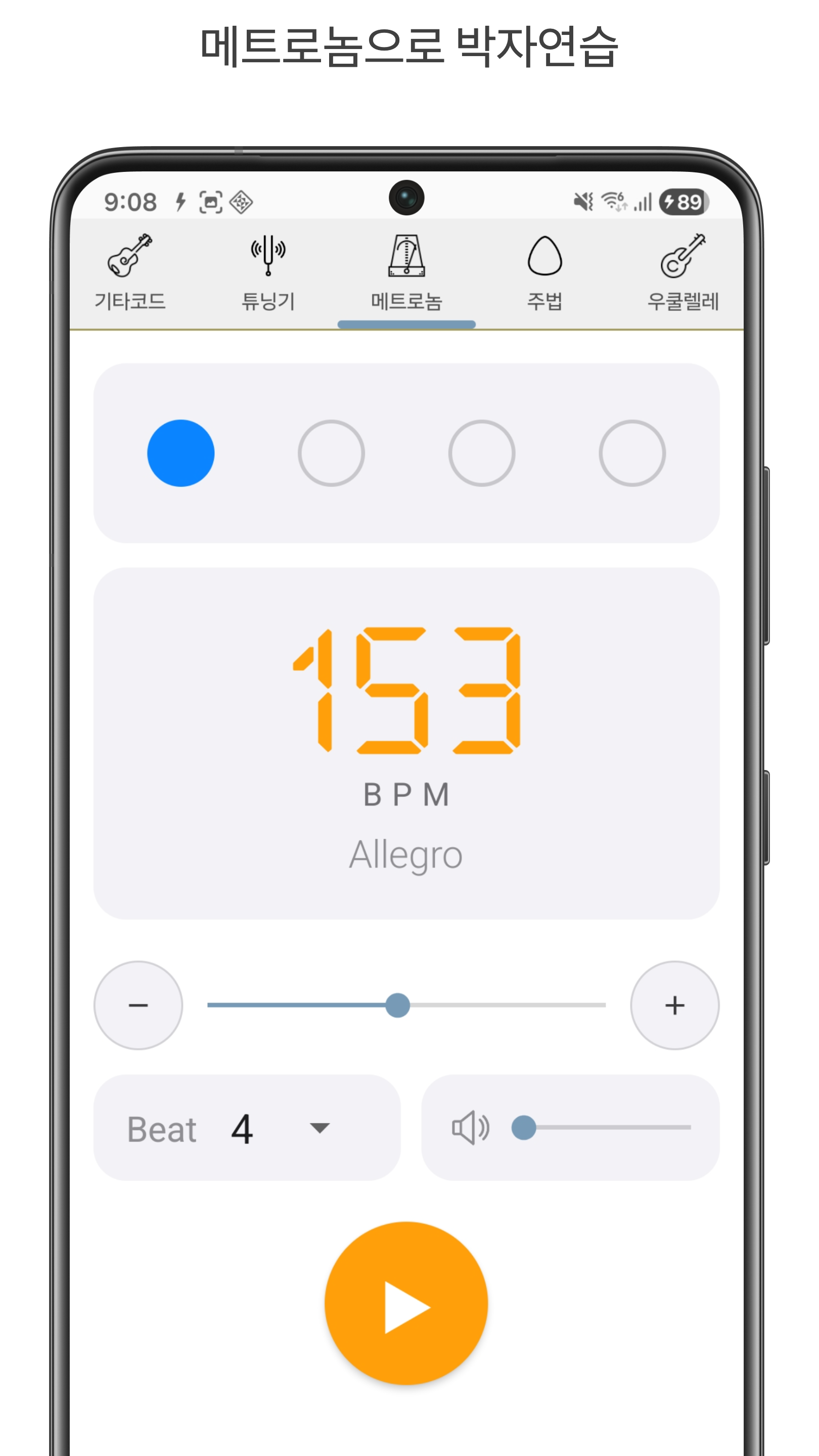 Guitar Techniques: Lets you pre-assign up to 12 chords and play them in sequence — perfect for practicing strumming patterns. You can freely configure strumming (stroke) and arpeggio patterns, making it great for self-guided practice.