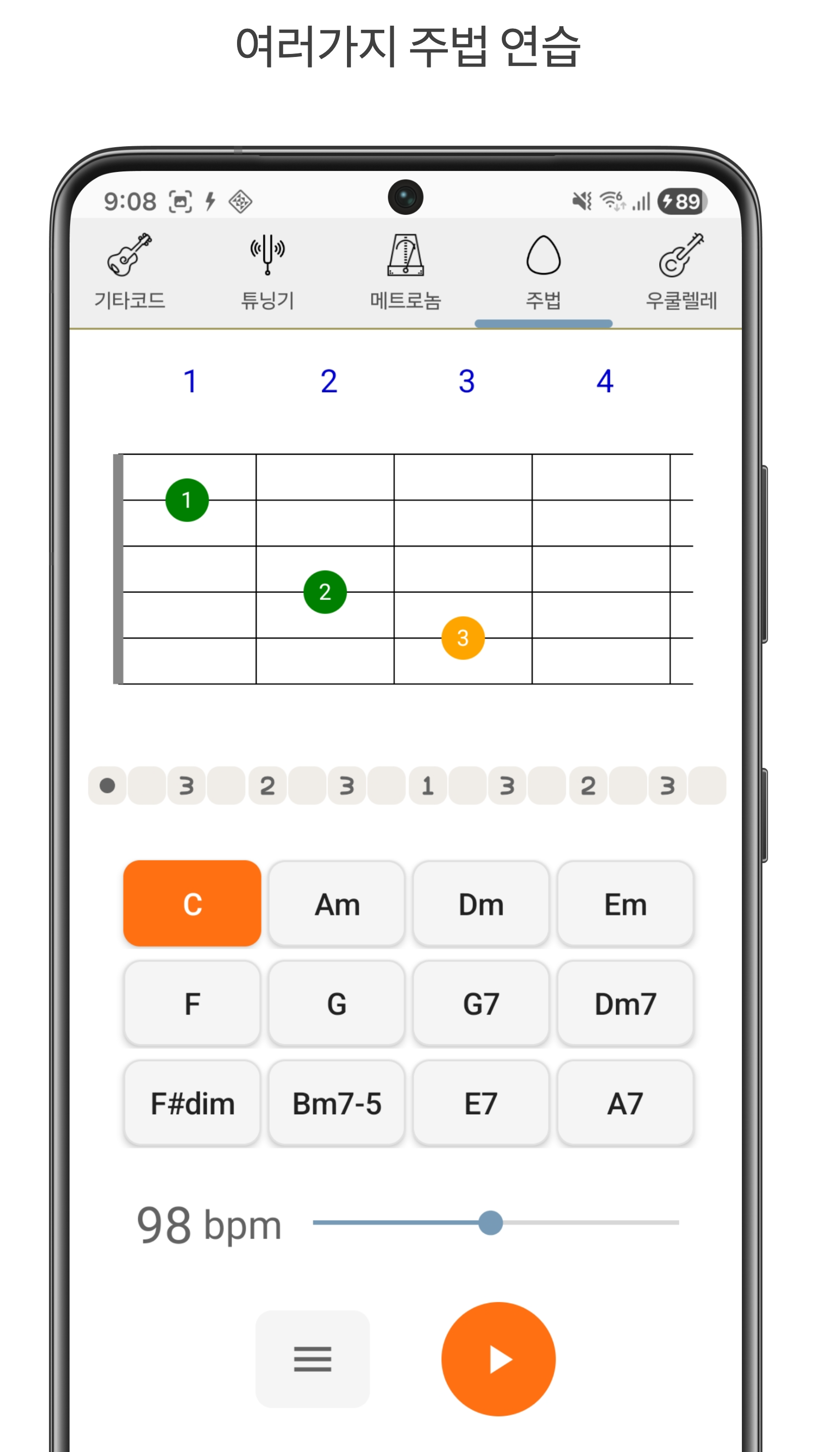 In addition to guitar chords, the app also supports guitar techniques, metronome, and ukulele chords.