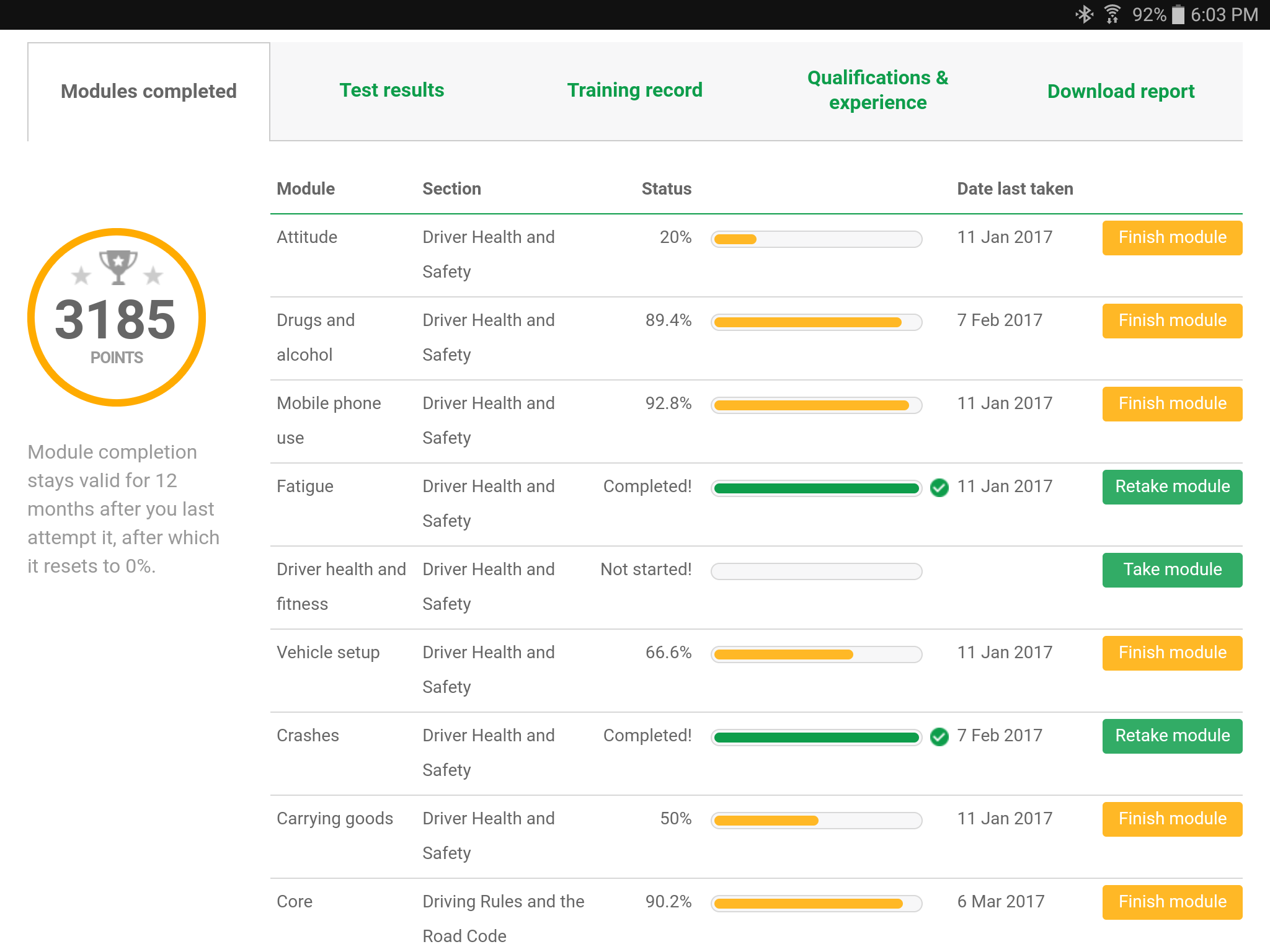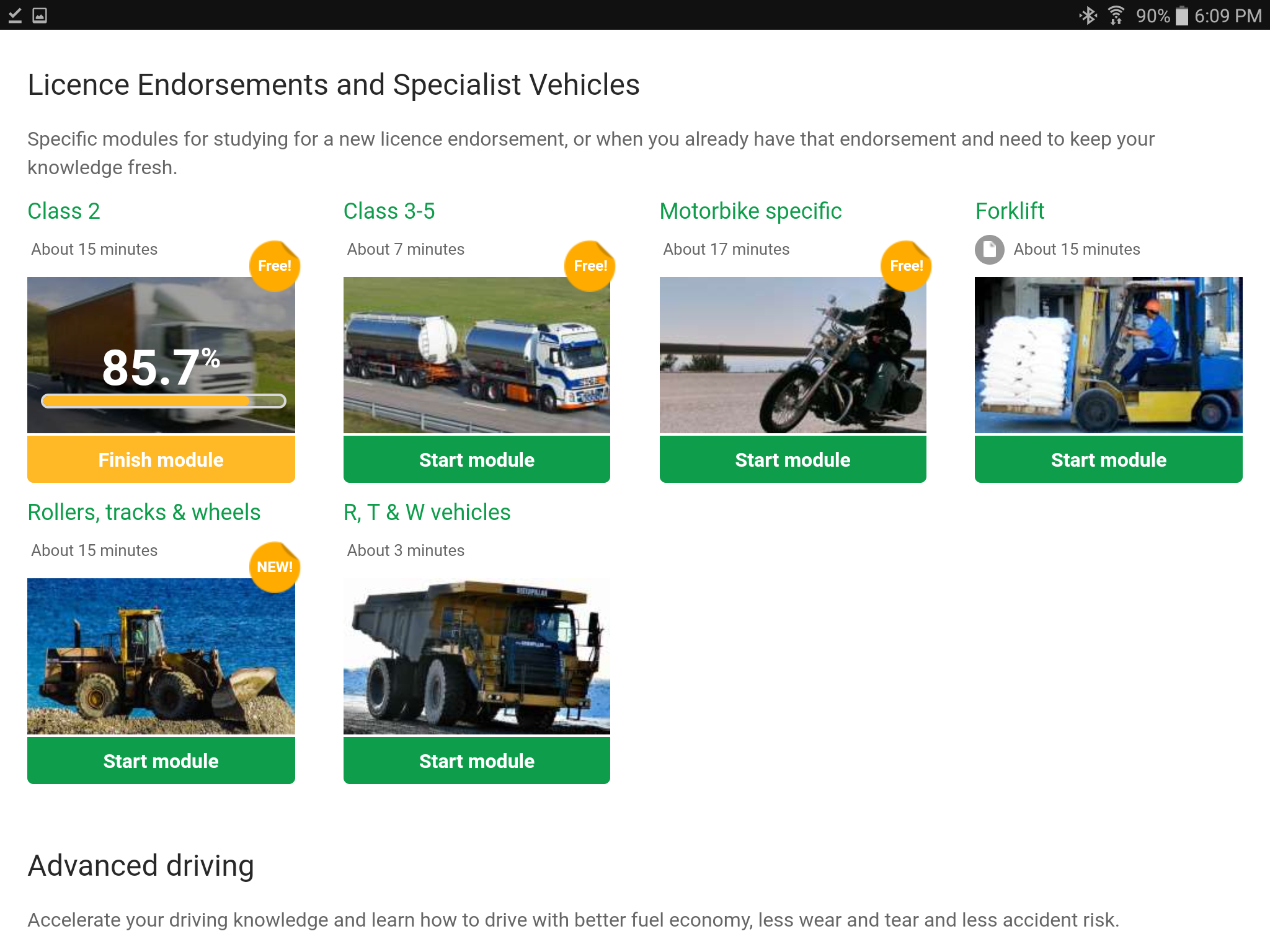 DT Driver Training's driving theory tests for car, heavy vehicle and motorbike learner licences include official New Zealand Road Code questions from NZTA for practising your learner licence, as well as premium modules covering company and fleet drivers of trucks, cars and specialist vehicles. AD-FREE VERSION AVAILABLE: Simply buy any course and all the ads will disappear. It works on phone or tablet and seamlessly syncs with your DT Driver Training web account. WHO SHOULD USE THIS APP? - Learner drivers can practice the Road Code for their learner licence test for cars, heavy vehicles and motorbikes for free - Fleet managers and business owners can manage driver education and Health and Safety compliance - Company drivers can maintain their knowledge of the Road Code as well as learn advanced techniques for accident reduction and improved fuel economy - Drivers of forklifts can learn the theory required for the endorsement tests - Truck drivers can support their NZQA, SAFED and NZLTA courses and qualifications with courses for logbooks and worktime, pre-trip inspections, and dangerous goods endorsements. - Tourists and visitors to New Zealand can learn the Road Code in English, Spanish, Chinese, French and German and can use the tourist quiz for free. FEATURES: FREE VERSION - All learner licence modules are free and include over 400 questions for car, motorbike and heavy vehicle class 2 and class 3-5 - Instant feedback on your answers, enabling you to learn more quickly and effectively. - Totally up-to-date with all the latest changes to legislation and rules from NZTA - View your progress through each module - Create a free account and store the last 5 test results - Over 300 articles and resources - Bonus tourist quiz in multiple languages FEATURES: PAID ACCOUNT - Purchase any course: Fleet Driver Plan, Learner Licence Plus, Low-Speed Manoeuvring and Towing, D endorsement, F endorsement, Forklift Operator's Certificate, Driving in Difficult Conditions, Logbooks and Work Time or any other. - No ads - Advanced modules that teach you to drive like a pro and cover driver health and safety, and vehicle technology and safety features - Modules for truck drivers to get an advantage when applying for jobs, including truck loading, truck fuel economy and the truck loading code - Licence endorsement modules including forklift and rollers, tracks and wheels vehicles - See your full history of test-taking and view any test you've ever taken, plus the questions you got incorrect - Audio recordings of questions - Log your practical driving lessons from your driving instructor, or any other training you take and keep it in one place - Manage other drivers if you're running a team, and generate reports on their progress for Health and Safety at Work Act compliance. WHO USES DT DRIVER TRAINING? Over 100,000 people per month use DT's theory tests, from new drivers just getting their first licence through to experienced drivers and companies with large fleets. This is the app that driving instructors recommend and use. Since 2010 we have been the first choice for learner drivers and experienced drivers. Over 700,000 New Zealanders visit our website every year. IMPORTANT You need an internet connection to use this application as the questions are pulled directly from our server every time so that you get the latest information, and if you have an account your results are synced automatically.